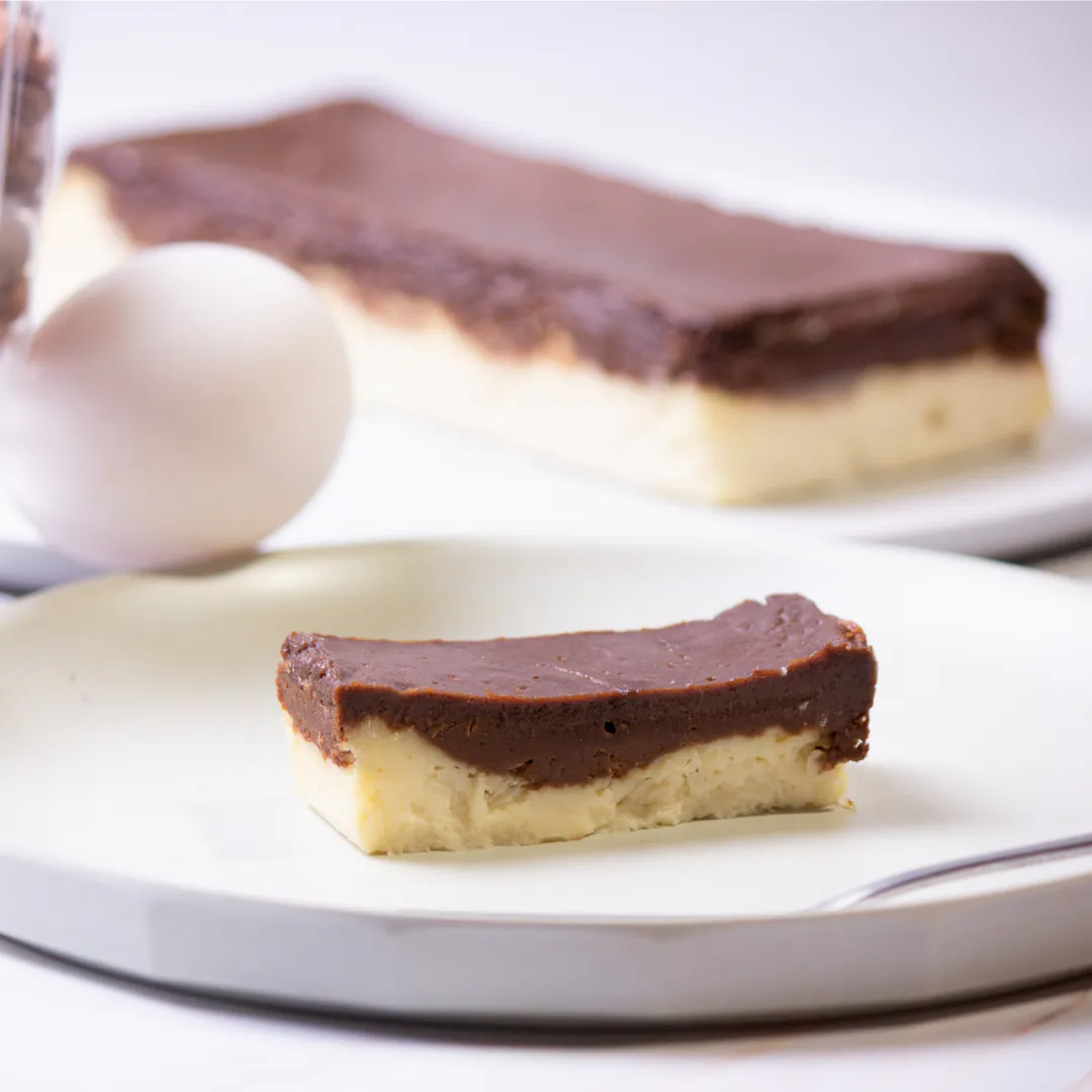 クリームチーズとサワークリームが織りなす、さっぱり濃厚なチーズケーキとガーナ産カカオ豆を使用した上品で濃厚なチョコレートの2層のチョコレートチーズケーキです。口に入れた瞬間からカカオの芳醇な香りとチーズケーキの濃厚な味わいが口いっぱいに広がり、カカオの深いコクの余韻が残ります。