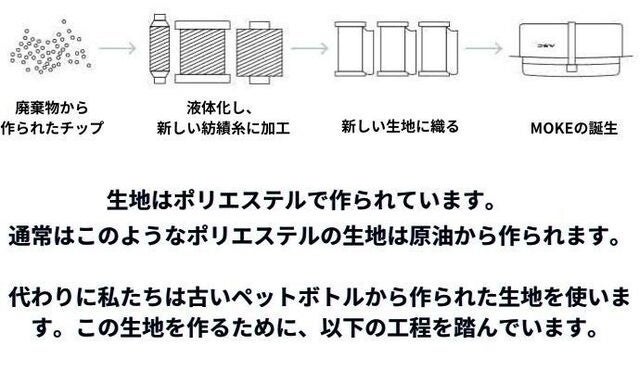 MOKKは33本のペットボトルをリサイクルして作成されており、環境に優しいものとなっております。