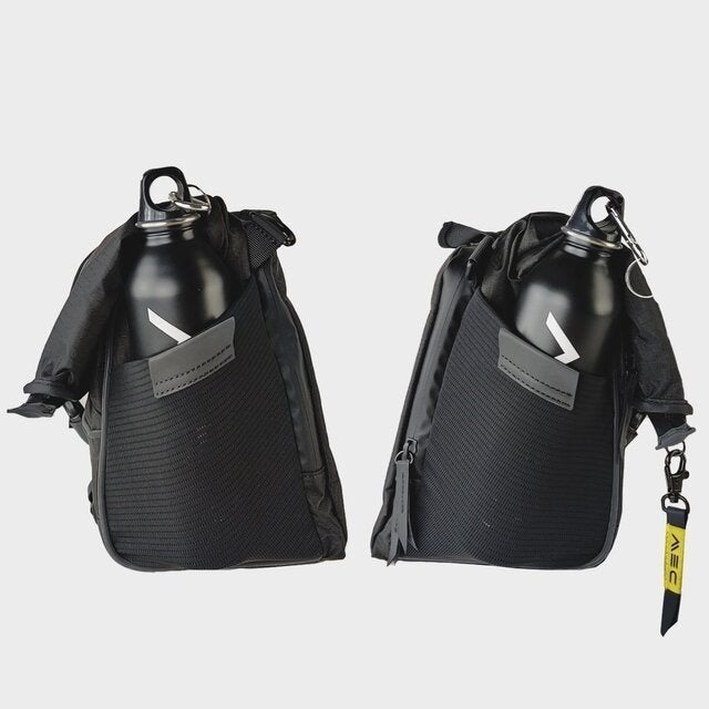 左右には伸縮性があるメッシュ生地のボトルホルダー付き。