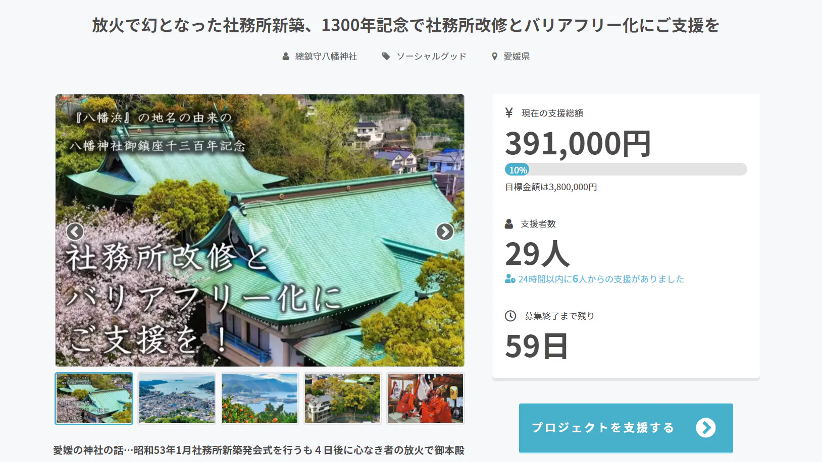 スタートより4日間で30名近くの皆様から38万円を超えるご支援をいただき、