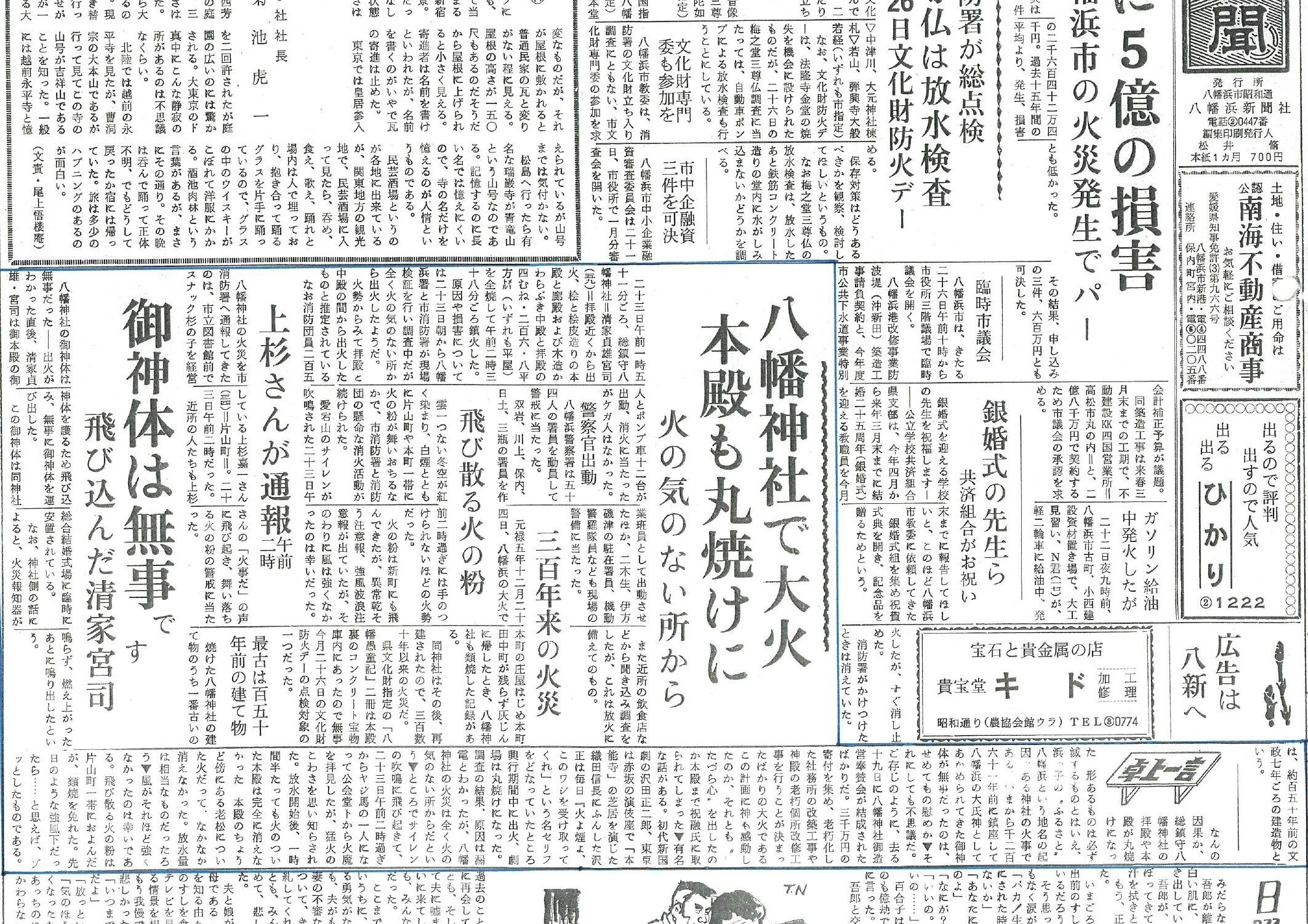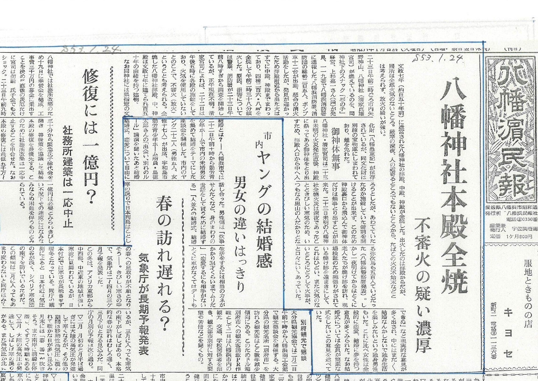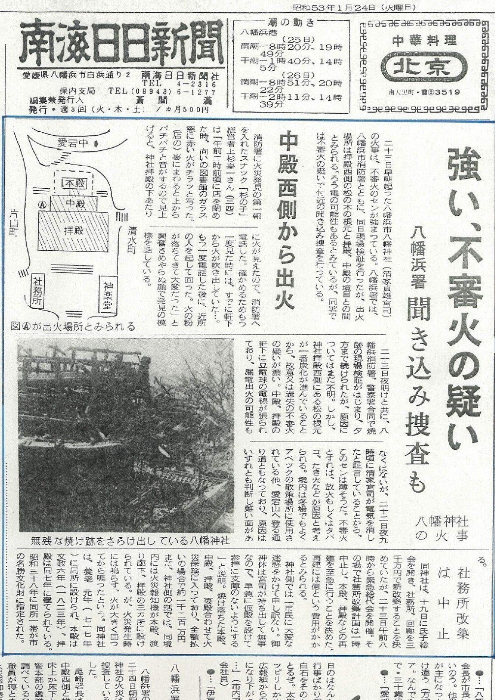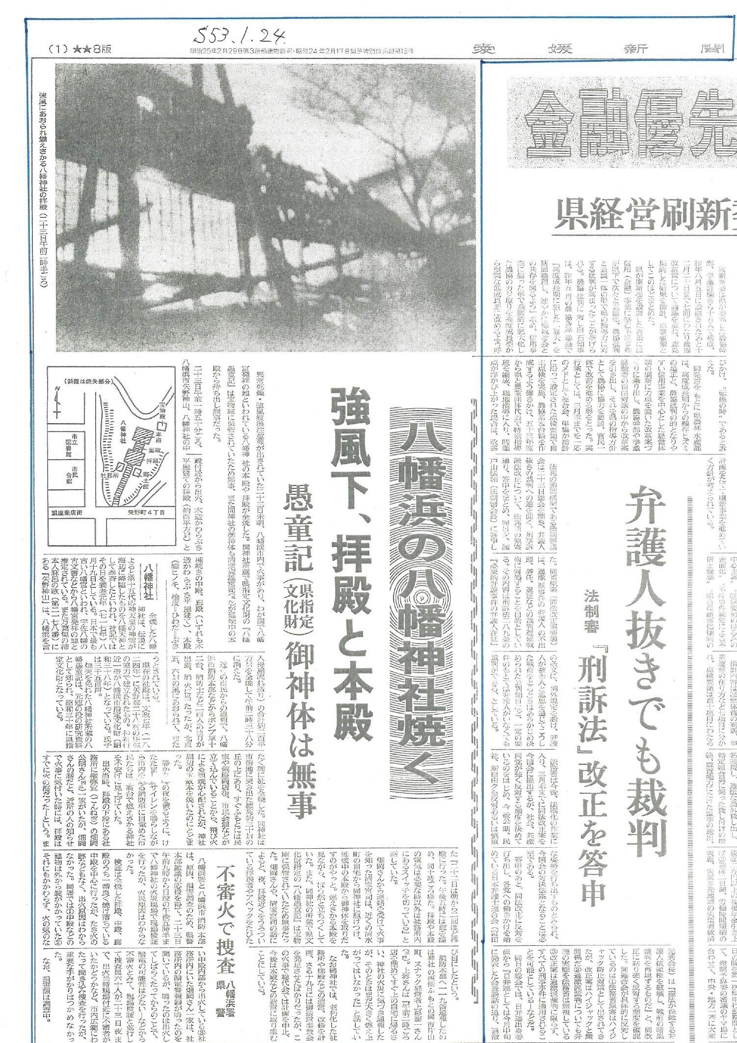 八幡浜民報 昭和53年1月24日付1面