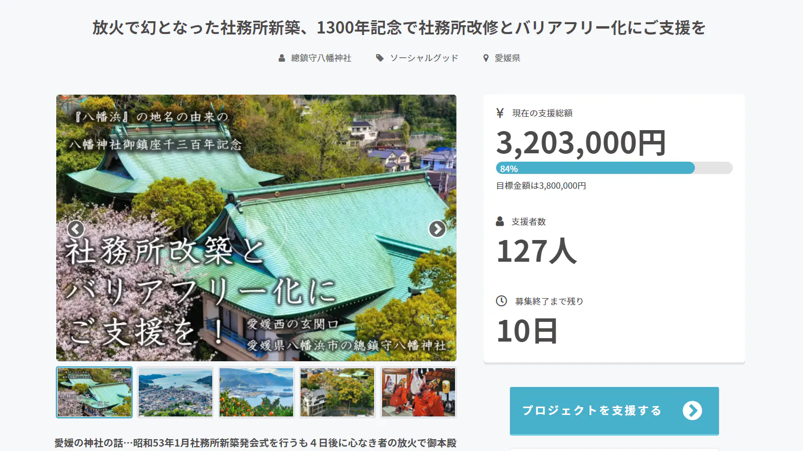 放火で神社が全焼し、計画が頓挫してしまいました。