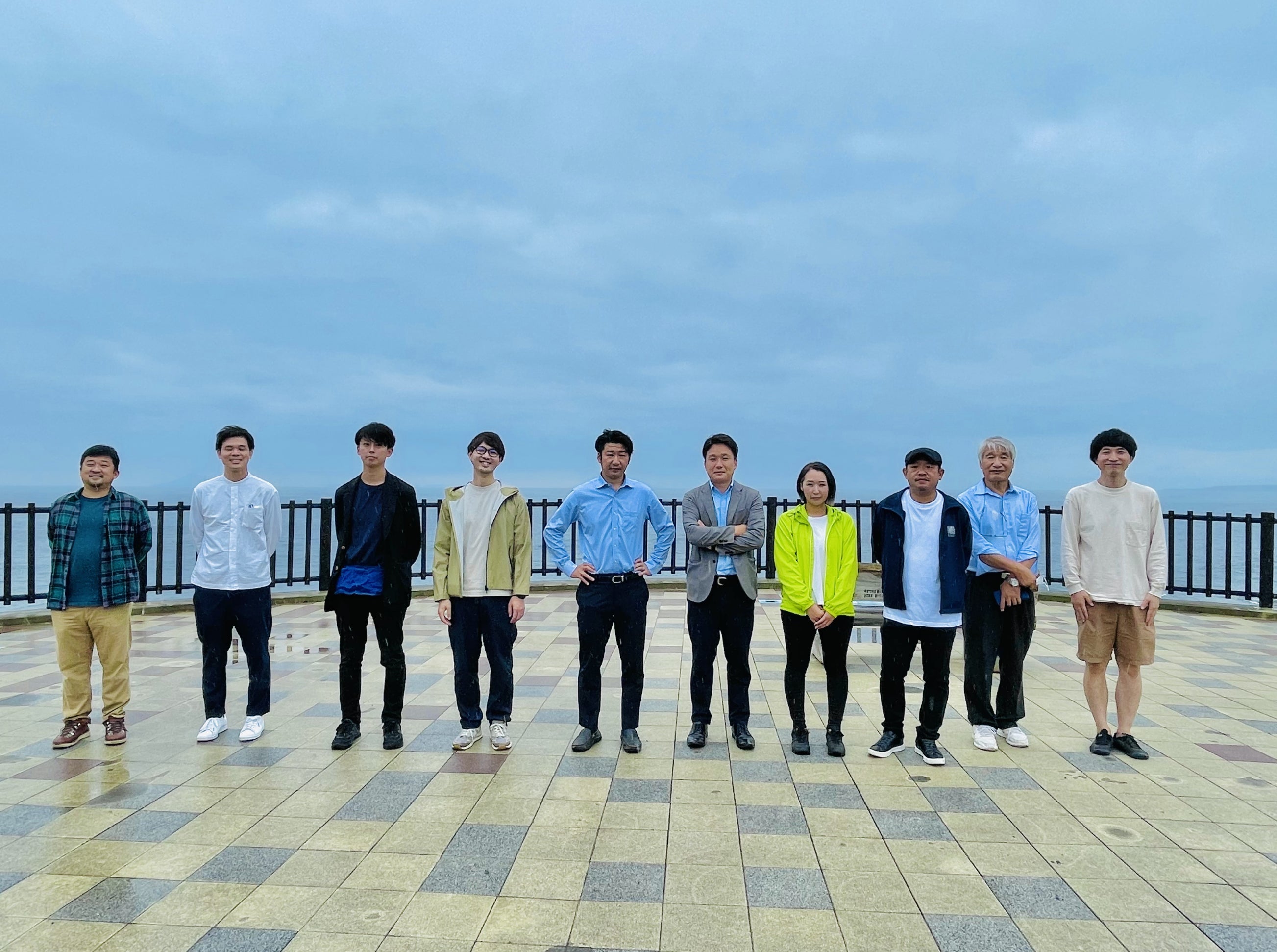 店舗のすぐ近くのサンライズテラスでの集合写真
