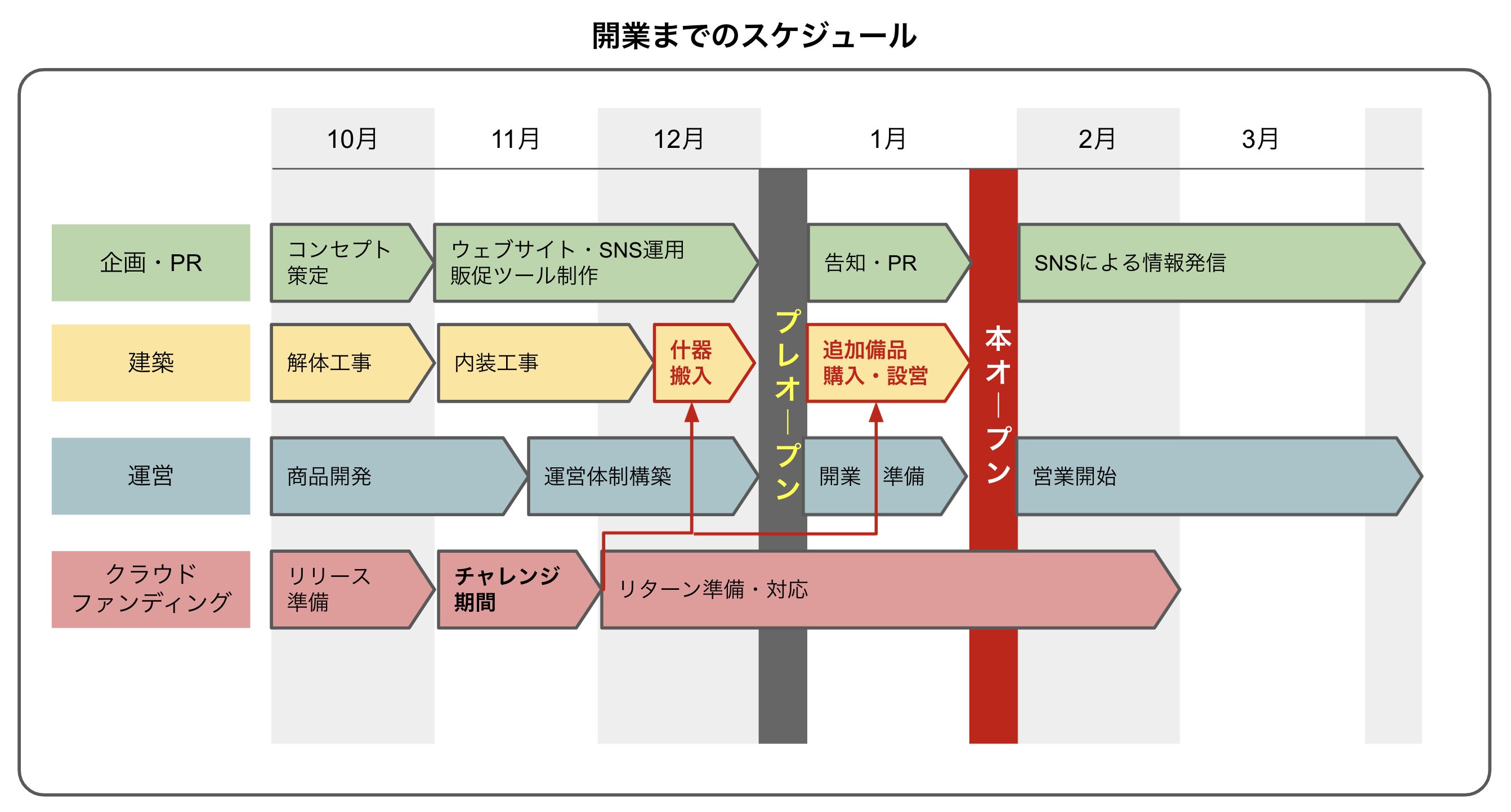 スケジュールとしては12月末にプレオープン、1月中の本オープンを予定しています。それにあわせ、企画・PR、建築、運営の部門での準備を進めています。