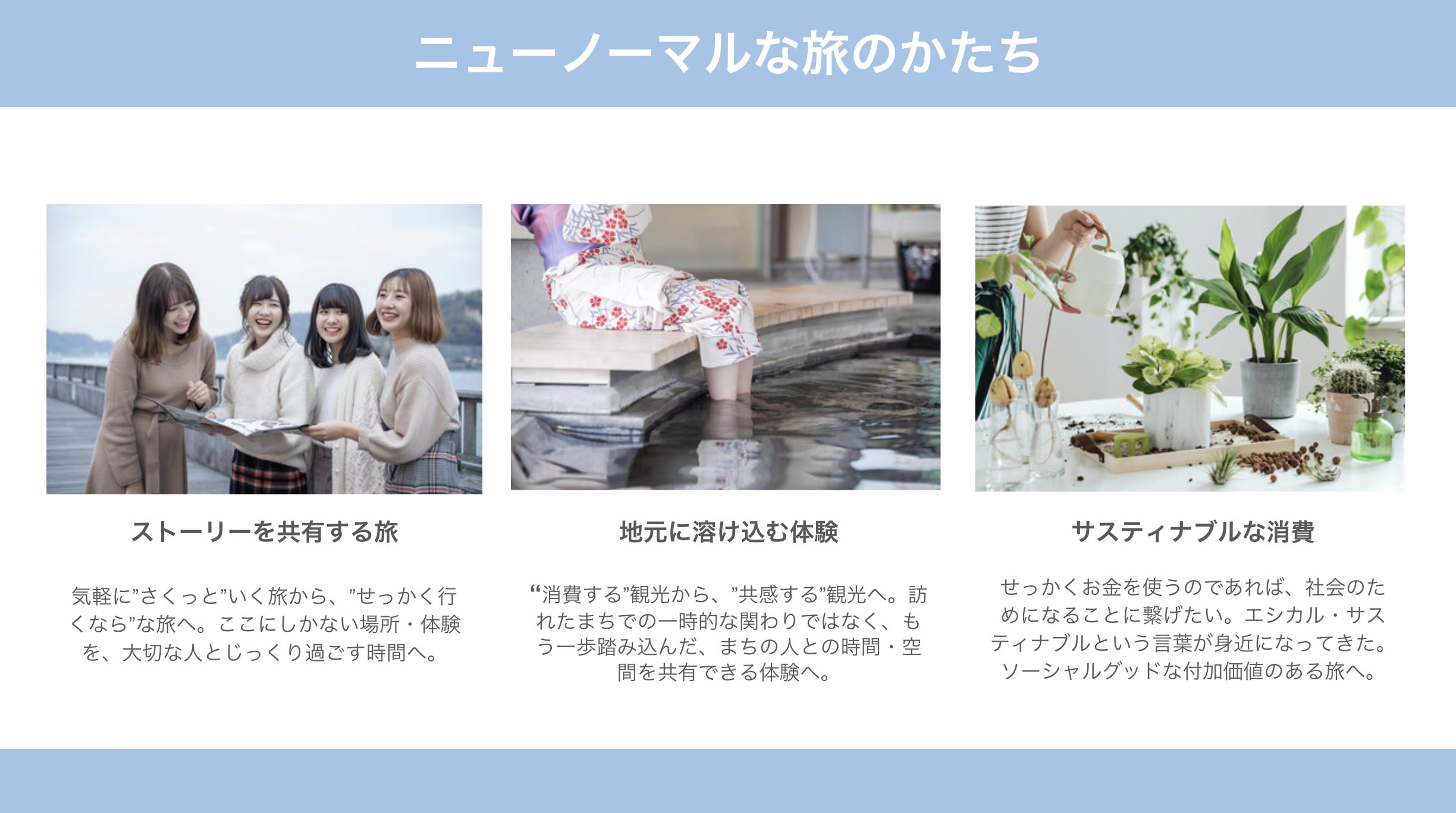 「消費する観光」から、もっと丁寧に、その土地を知りながら旅を楽しむ「共感する観光」への移行も増えているように感じます。