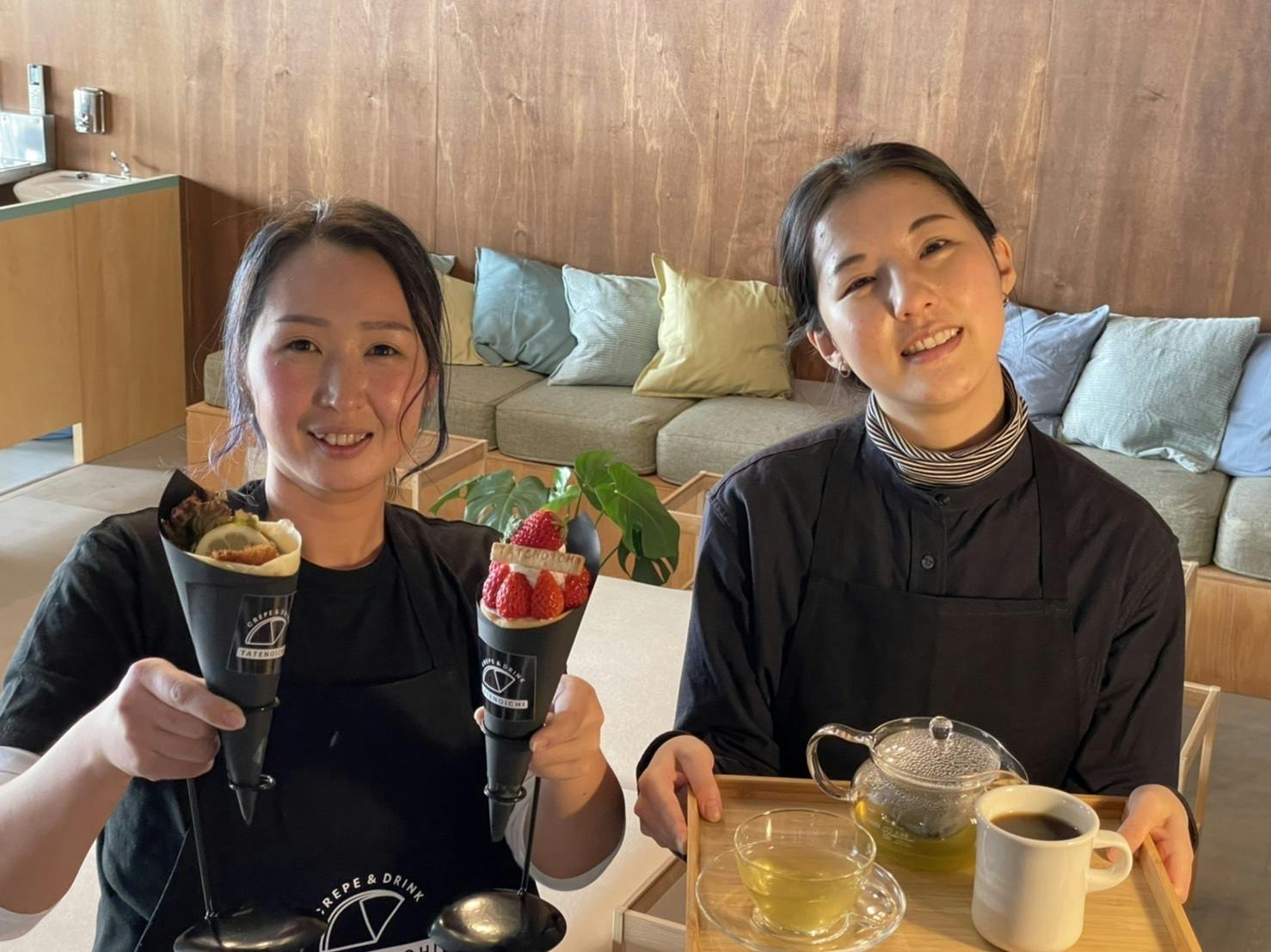 フルーツを贅沢に使ったクレープと、バリスタがつくるオリジナルドリンク(試作品)