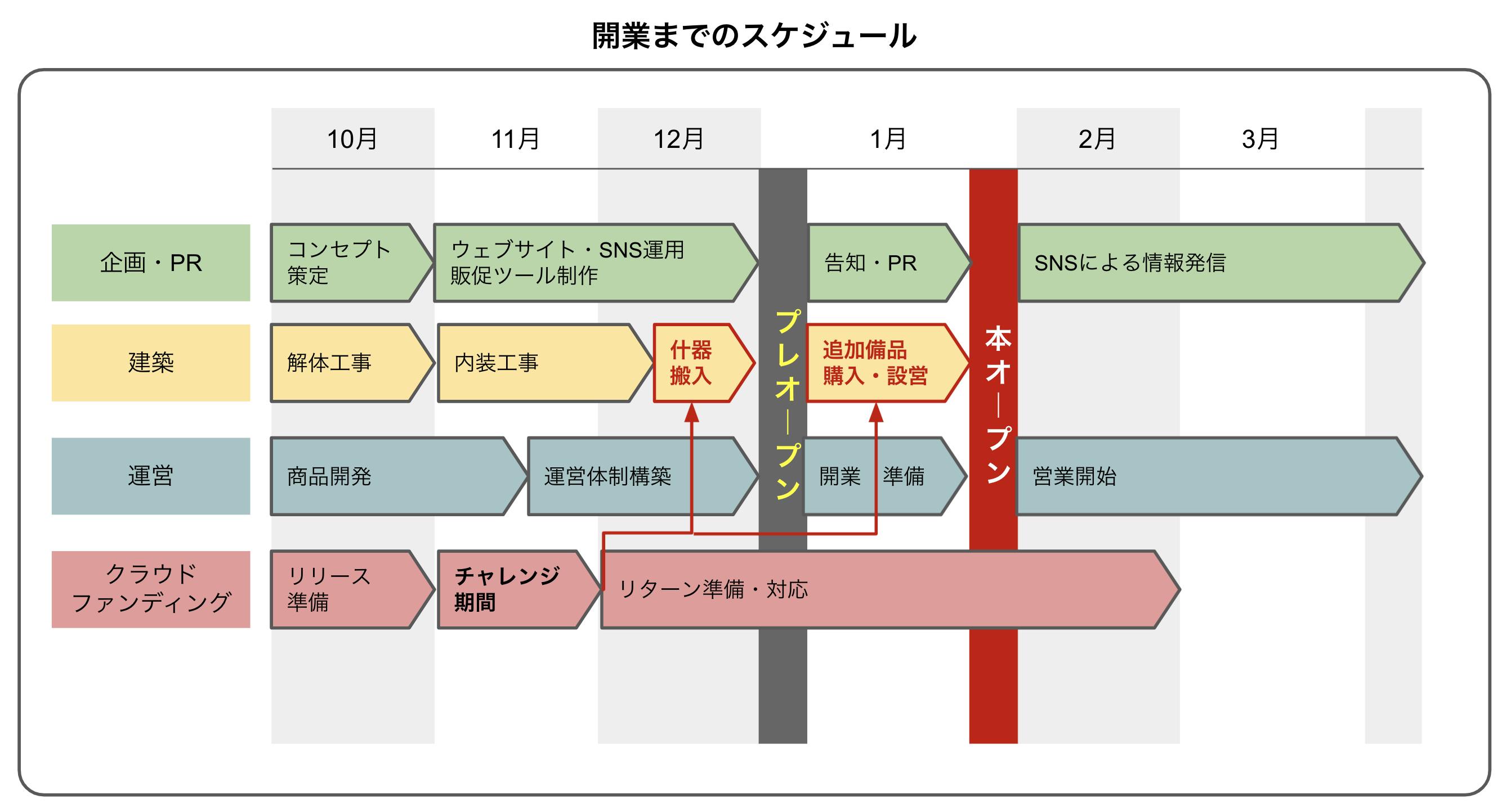 本クラウドファンディングでは10月末から12月頭までの約1ヶ月間をチャレンジ期間とし、そこでの集まった資金は12月末と1月に予定している什器購入や追加備品購入の費用に充てさせていただく予定でいます。