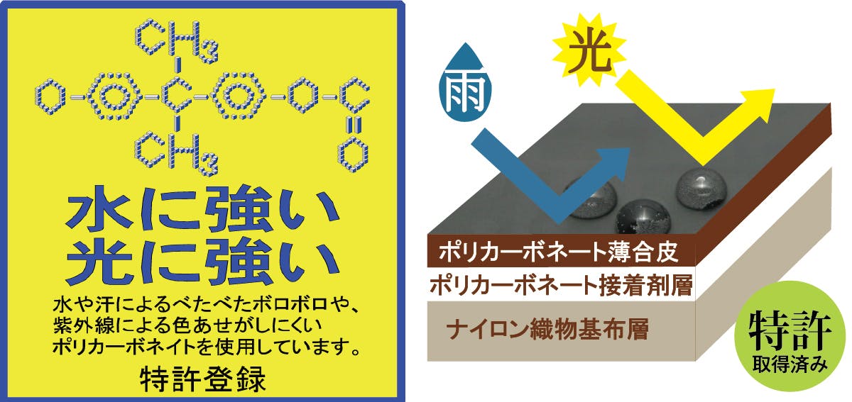 【特許取得】 ポリカーボネート薄合皮を使用しています。