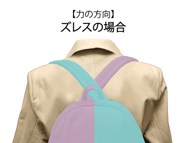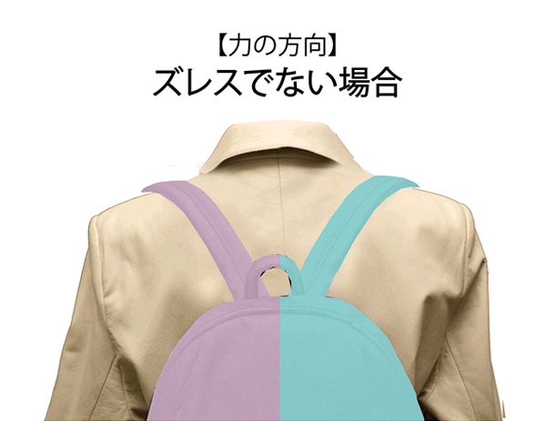 アクティブに動いても肩紐がずれ落ちない(ズレスシステム)