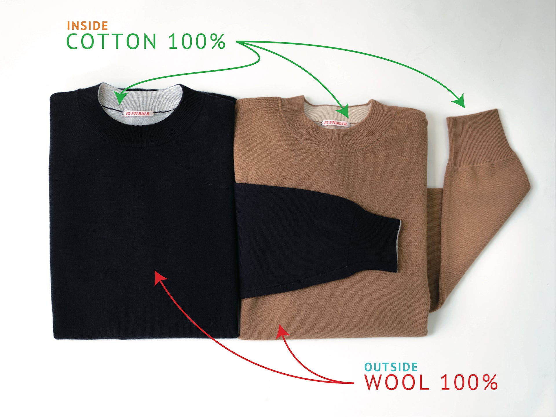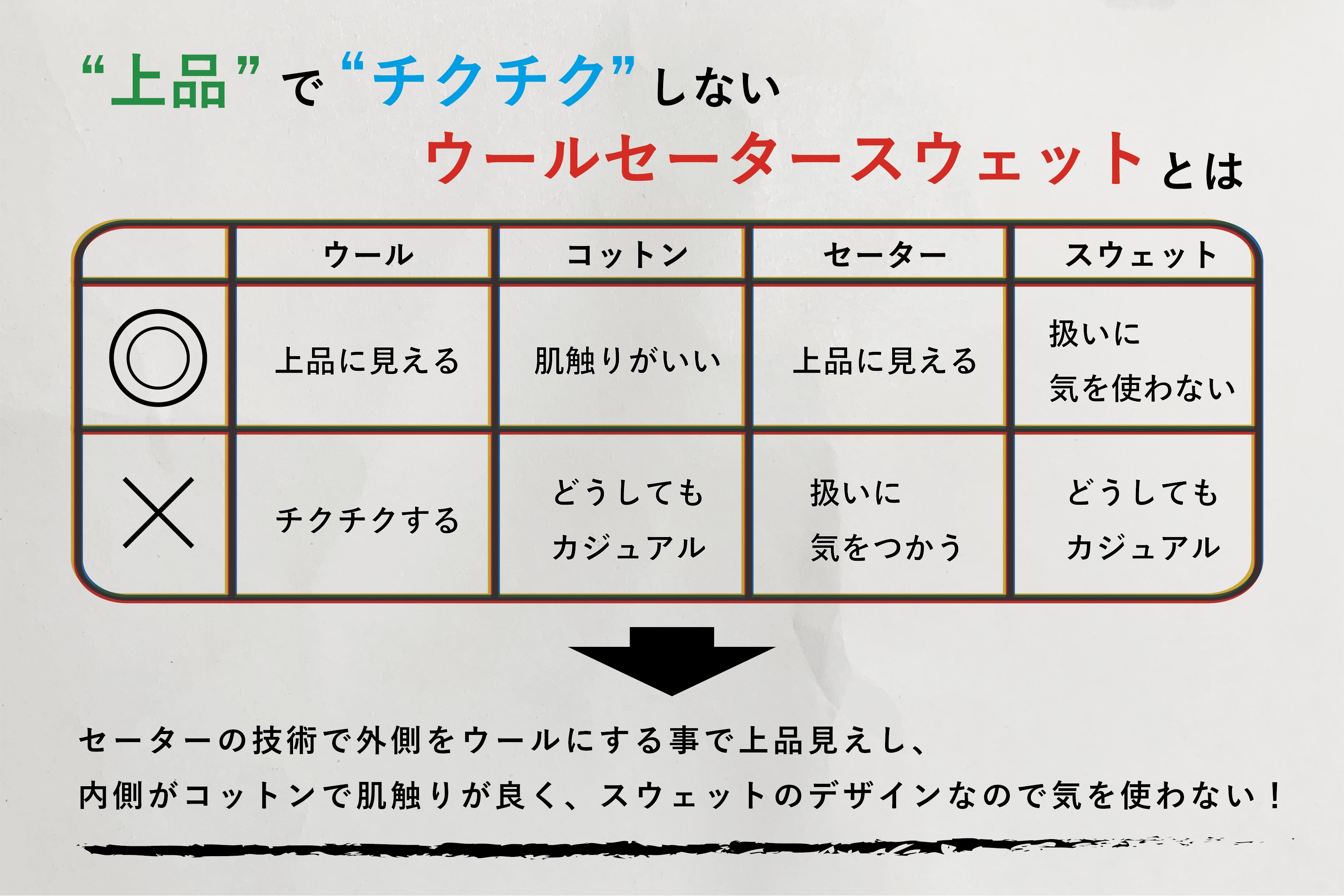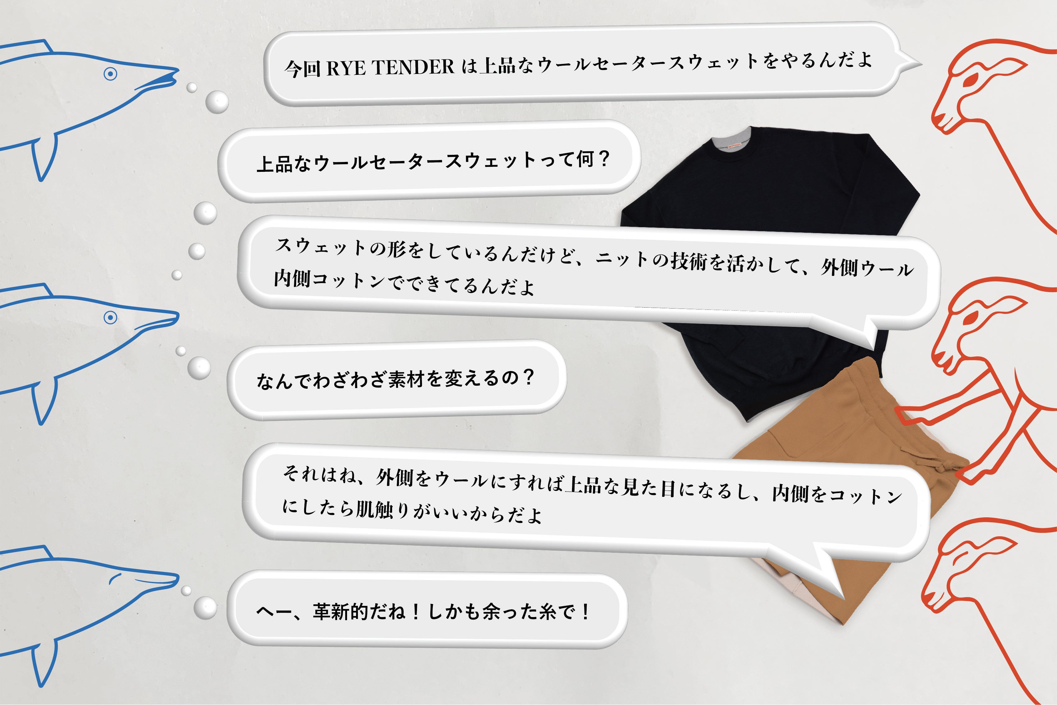 この度RYE TENDERは上品でチクチクしないウールセータースウェットを開発しました。