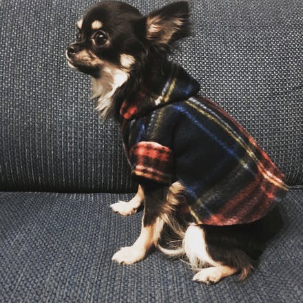 今回はシンプルなチェック柄でフード付きの洋服を作りました。