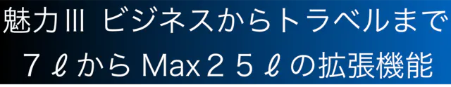 日常からビジネス、アウトドアまで様々なシーンを快適にする機能が詰まっています。あらゆるものを収納できるスペースを確保し、洗練されたスタイリッシュなデザインがあなたの日常を便利に彩ります。