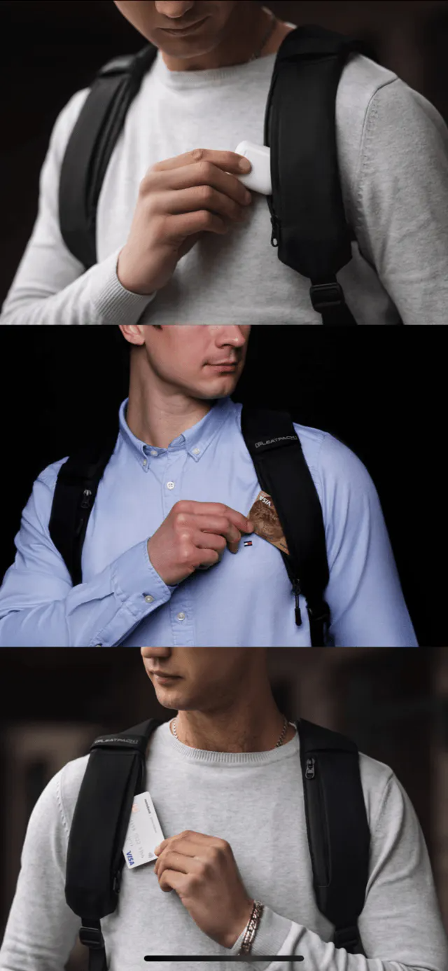 メインポケットとは別に貴重品を入れるための背面ポケット、また背中に当たる部分にも隠しポケットを配しており、日常利用だけでなくパスポートなど貴重品が不安な海外旅行にも対応可能です!