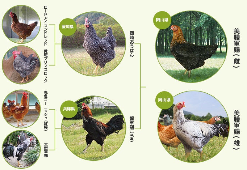 兵庫県たつの市で育てられた「龍軍鶏ごろう」を交配させて生まれた、純国産血統の鶏です。