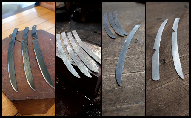 金鎚で叩きながらペーパーナイフの形を造ります。