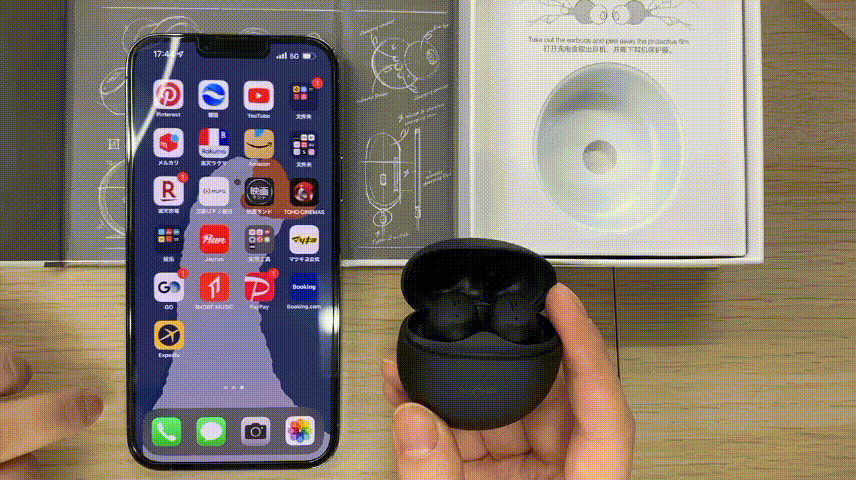 両耳をかけてから、音楽の設定を開始する