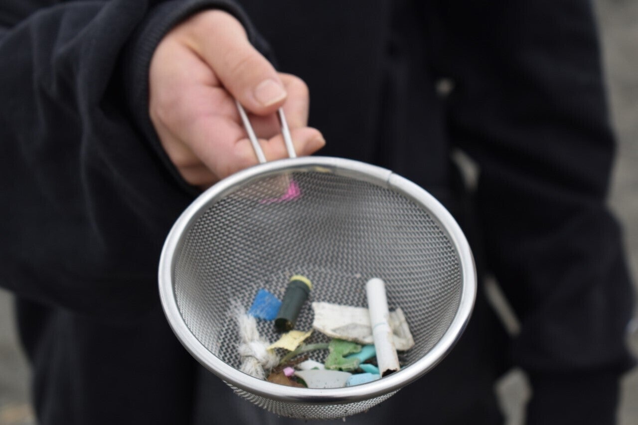 タバコの吸い殻など大量のゴミが落ちているのをひとつひとつ丁寧に拾う