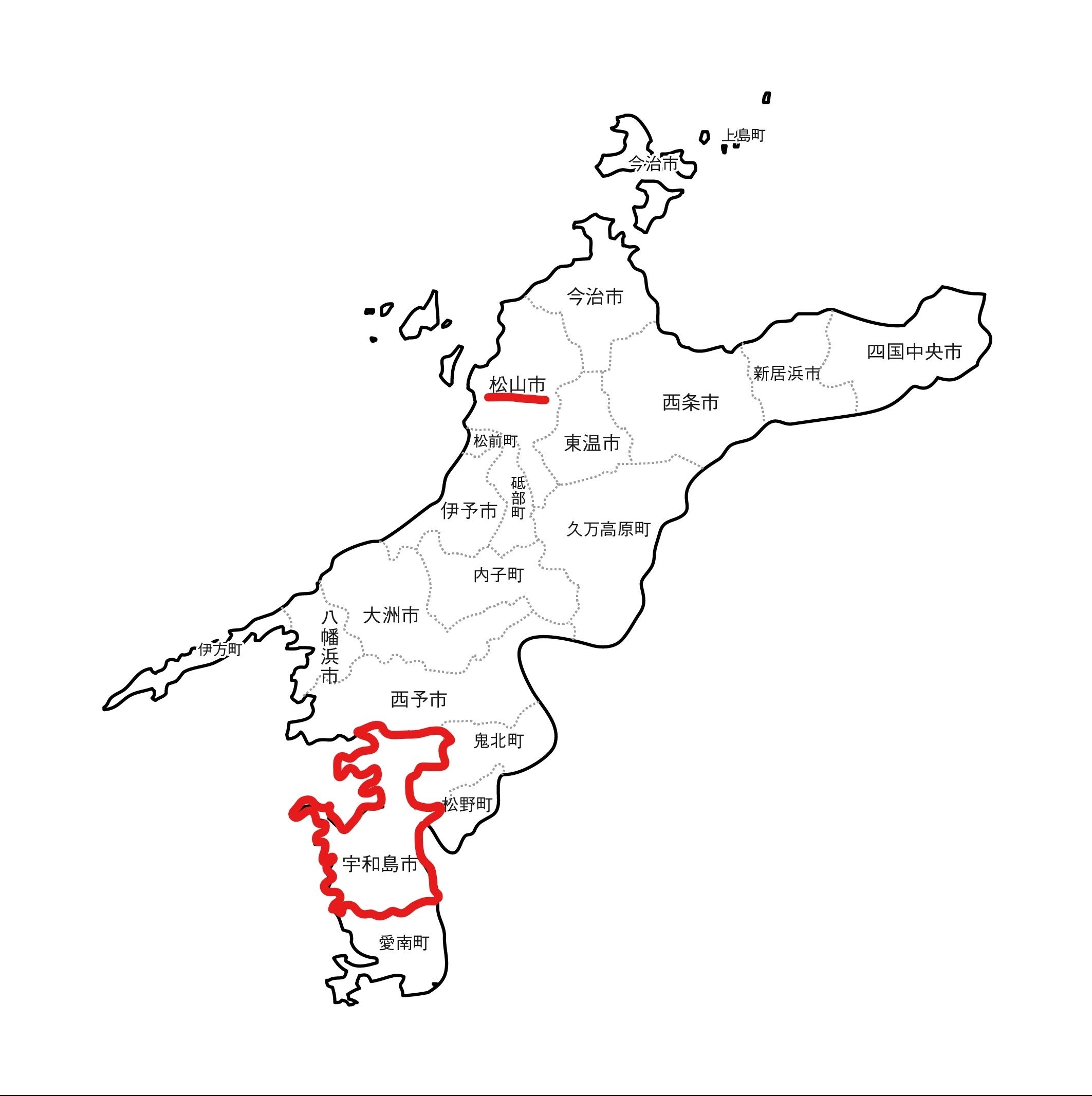 愛媛県の南西部に位置し三方を山に囲まれ西側は美しいリアス式海岸を形成しています。県庁所在地の松山市からは高速道路で1時間ちょっと。