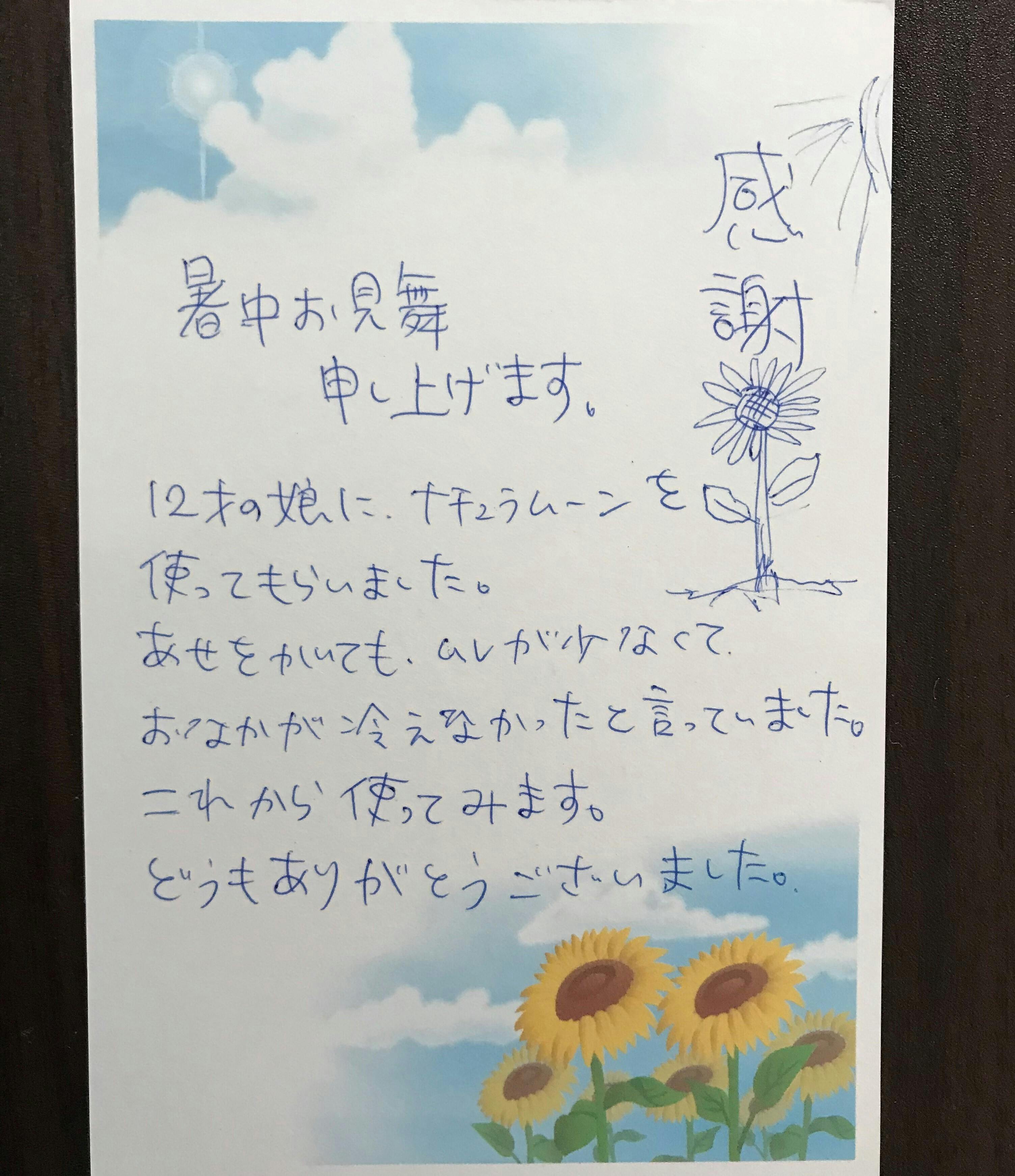 ④「フードバンクあつぎ」様の活動にて生理用品をお届け出来た方より感謝のハガキが届きました。