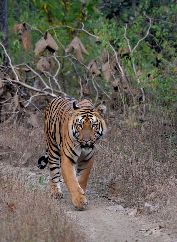 みなさま いつも応援有難うございます!2020年、21年はコロナ禍でインド、特に中央インドの私たちの活動地域の感染状況はひどいものでした。2020 年 3 月以降に数回外出禁止令が発動され、9 月半ばには第 2 波の到来、2021 年 2 月からはロックダウンが言い渡され、活動が制限されました。さらに悪いことに現地協働パートナーである WTI と協力体制を続けてきた森林局のトラ保護活動の中心的役割を果たしてきたレンジャーが5人もコロナで亡くなるという悲劇も起きました。目の前で何人もの知り合いが亡くなっていく状況下で、村の人たちが、こんな大変な時になぜトラの保護を?と思うのもわかります。しかし、ロックダウンで人が家から出なくなると、トラが行動範囲を広げて村のすぐそばまでやってくることが多くなり、たまたま出かけた人と鉢合わせし、パニックになった人が騒ぎ、トラを刺激してしまい、トラとトラブルになることも多くなりました。コロナも怖いが、人とトラとの軋轢を最小限に抑えるためにはパトロールが必至です。亡くなった仲間が成し遂げられなかった思いを受け止めながら、これからのトラとの共存を思い描いて今日もパトロールを続けています。