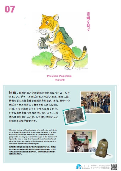現地パートナーWTIが、村人向けワークショップ用に作ったアニメを紹介します。トラの住む森の周辺で生活する村人は、薪や植物を採取したり、家畜を放牧したりすることで森に依存して暮らしています。そのため、森の管理がきちんと出来ていないと、トラとの衝突が発生してしまいます。例えば、人と突然出会して驚いたトラが人を襲ったり。。。村人が森の周辺で放牧した家畜が襲われたり、といったことが起こります。そして怒った村人が報復としてトラを殺す、といったことも起きてしまいます。このような負の連鎖を断ち切るため、例えば、森に入る時には大人数で行動し、大きな音を立てて、トラに所在を知らせること、家畜を出来るだけ森から遠いところで放牧し、トラからの距離をとると共に、森の植生を保護し、トラの餌となる野生動物の生活環境を守ることなどを、アニメは教えています。残念ながら現地語の音声に英語字幕となっていますが、村人の視点と共に、トラの視点もわかるアニメです。ぜひトラの気持ちになってご覧ください。https://www.youtube.com/watch?v=vfzD8z91w7g&list=LL&index=1&t=7s