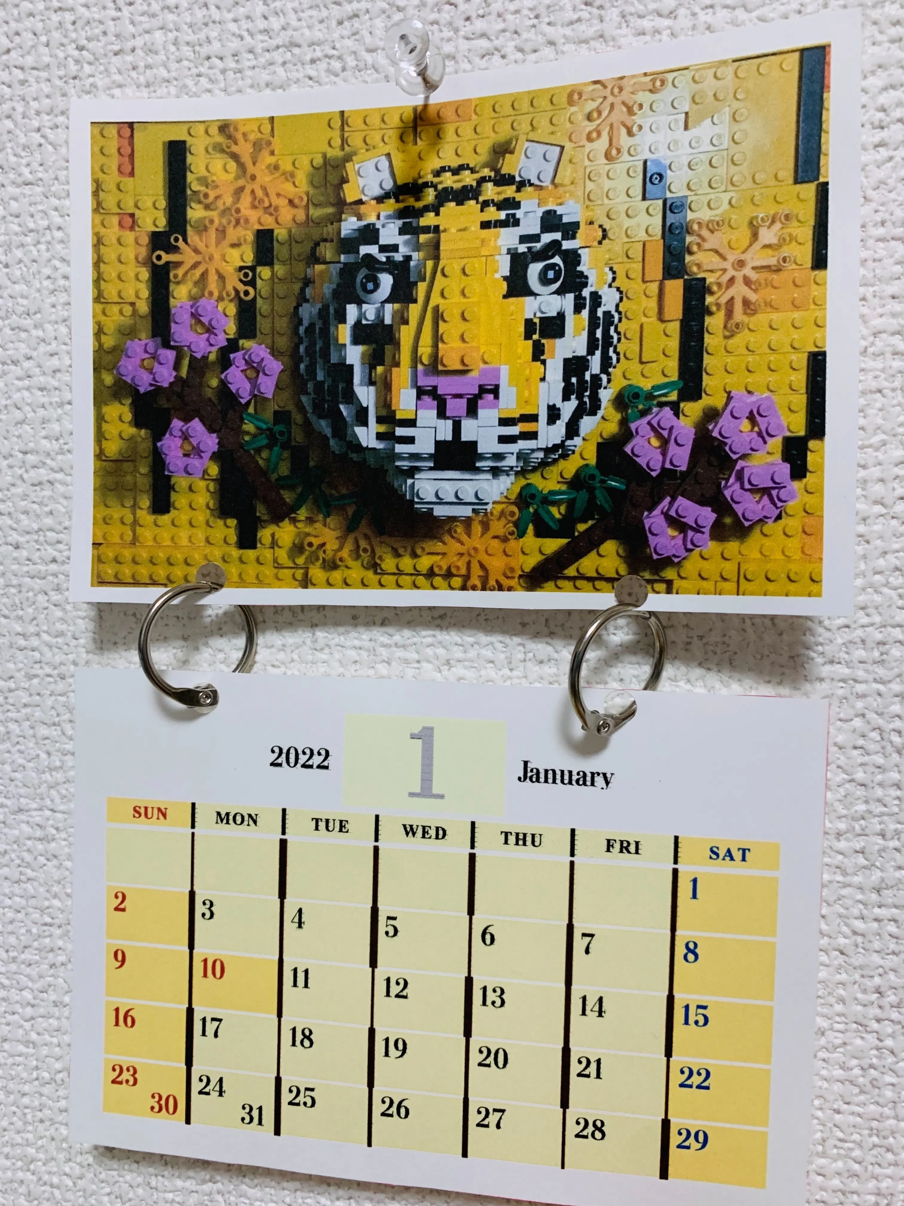 レゴカレンダー:各月には季節の題材を会員が制作したレゴ作品の写真がついたカレンダーです。1月スタートの2022年のカレンダーになります。