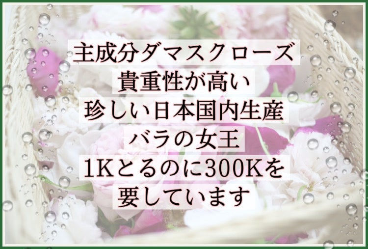 貴重性の高く、珍しい日本国内生産、バラの女王ダマスクローズが主成分。1Kとるのに300Kを要しています。ピーリングといえば無香料が多いですが、こちらは天然の気品漂う優しいローズの香りに包まれます。