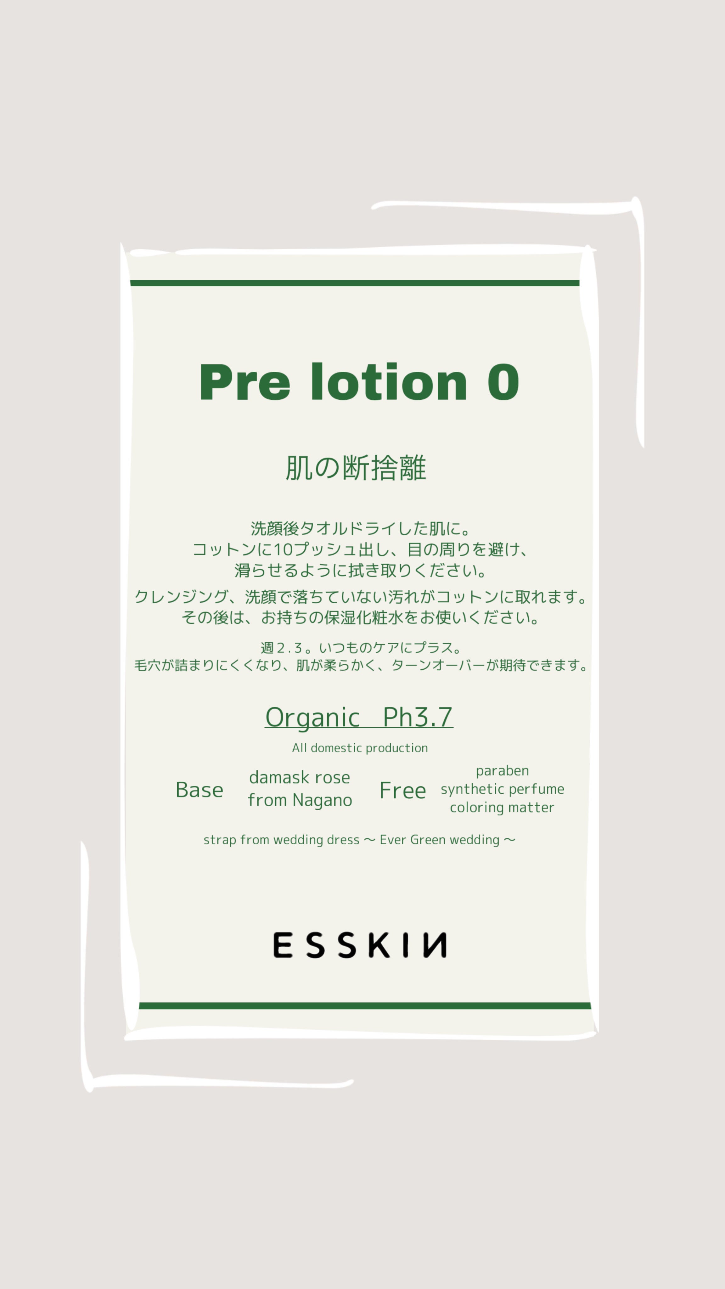 「Pre lotion 0」は化粧品であり、医薬品・医薬部外品・医療機器に該当しません。