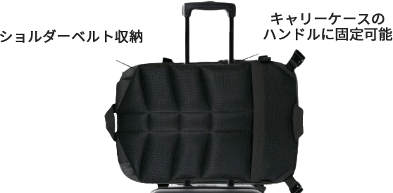 ・キャリーケースにも対応。しっかり固定でき、空港での移動もラクラク。