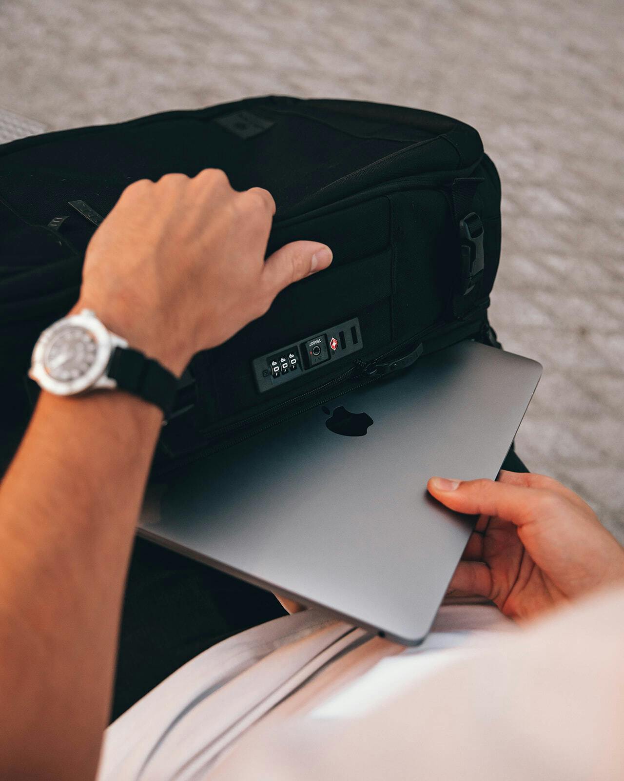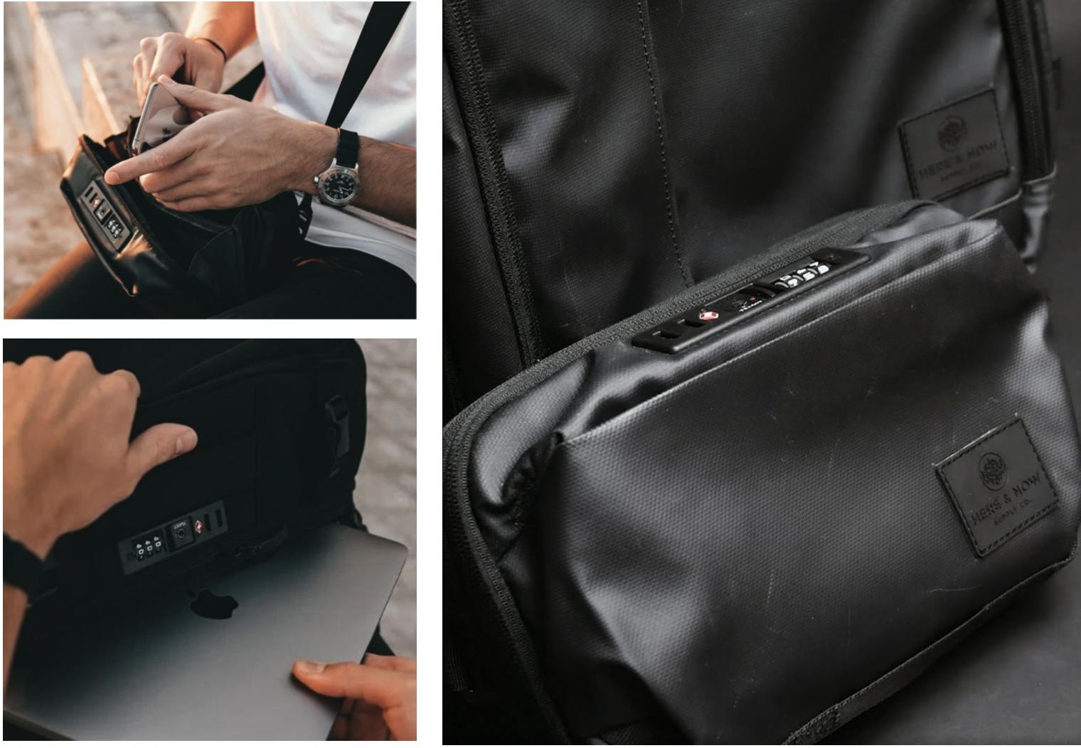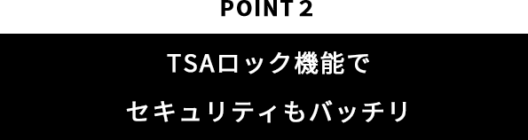 HYBRID PACKはPCコンパートメントに、NO-TECH POUCHはメインコンパートメントに、それぞれ国際基準のTSAロックが設置されており、盗難防止になります。