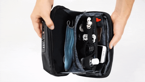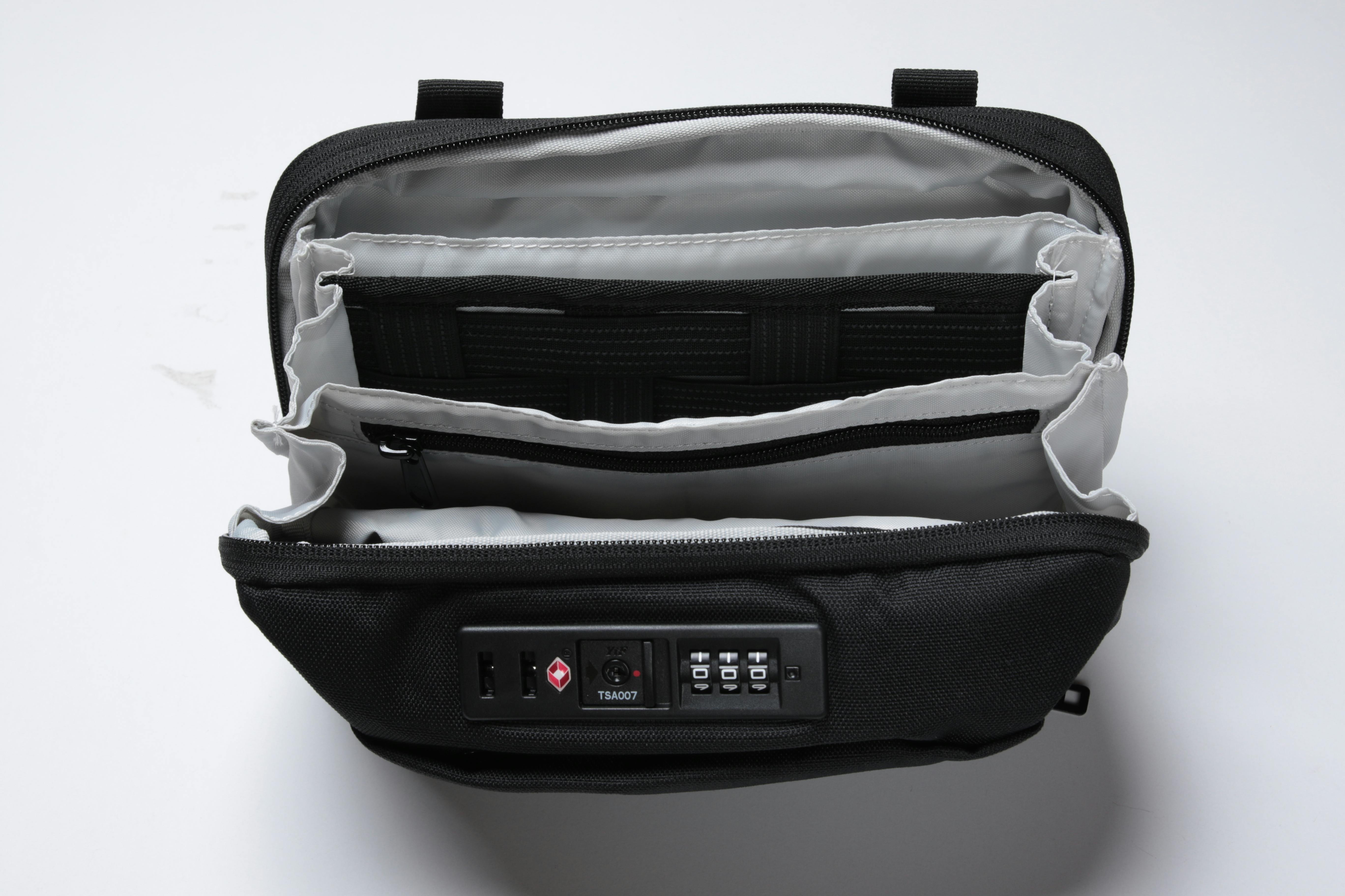旅行時には貴重品だけを持ち歩けるポーチが便利。ポーチにもTSAロックが付いているので、盗難防止にも役立ちます。ガバッと広く開閉!中の物が取り出しやすく、こまごまとした文具や化粧ポーチとしてもGOOD!