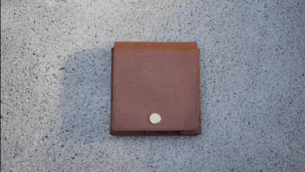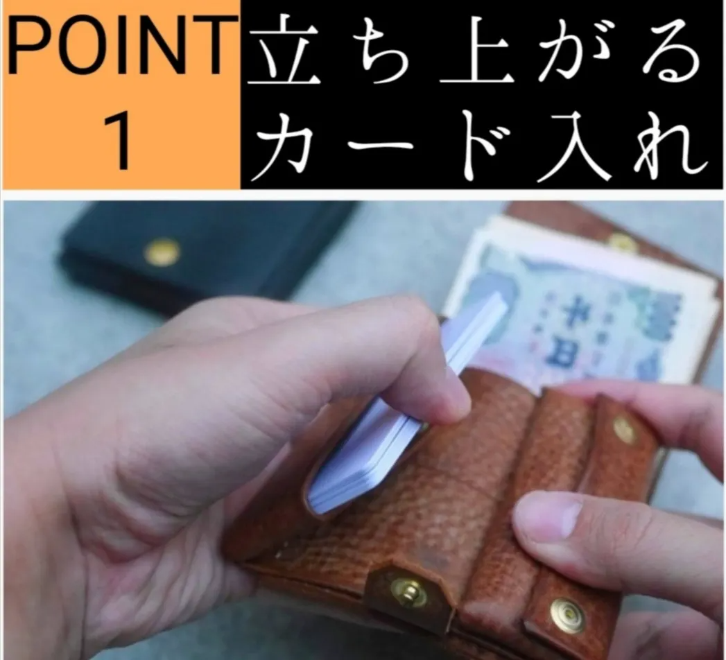 窮屈な空間から開放されるように、カード入れ全体が45度に立ち上がる。