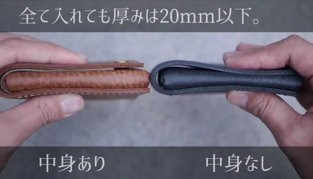 かと言って厚みのある革を採用すれば、収納量を極限まで減らす事になります。