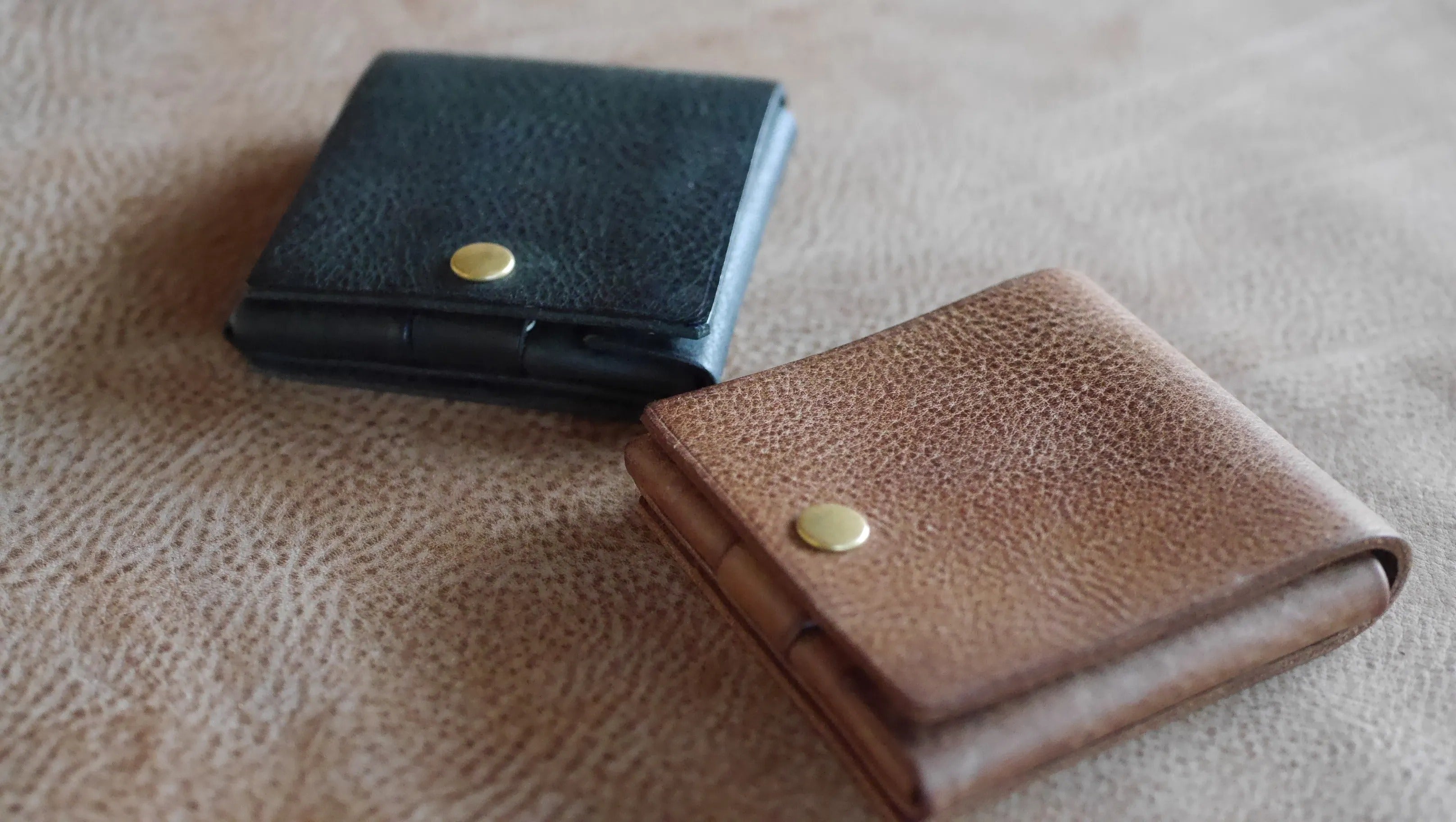 約0.9mm厚という、極薄革の貼り合わせにより実現した「薄くて強く高品質」まさにミニ財布の理想型【S】