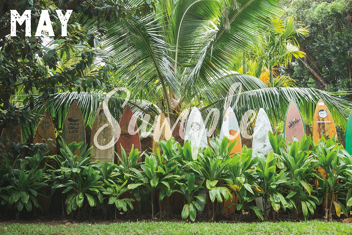 【5月】カウアイ島のとある家の生垣。強く美しい緑とサーフボードがハワイらしい
