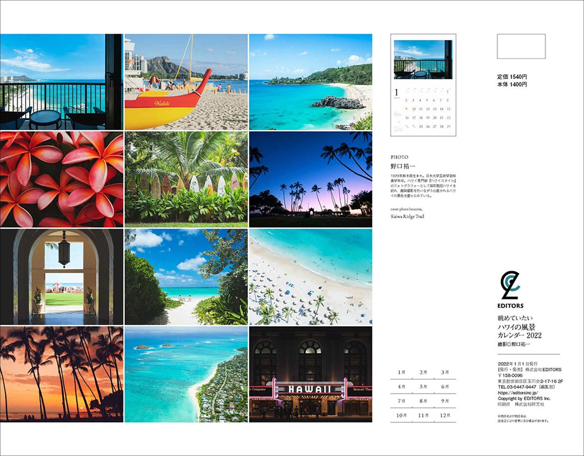 ハワイ取材ができていたコロナ禍前は、最新の風景を中心に写真を選んでいましたが、ハワイ取材に行けない中での制作となった2022年度版は、新しさではなく、過去に撮りためた数万点の写真を掘り起こし、選りすぐりだけを並べました。そのためクオリティは過去のものと比べても、一番と言っていいほどすばらしい写真ばかりになったと自負しています。