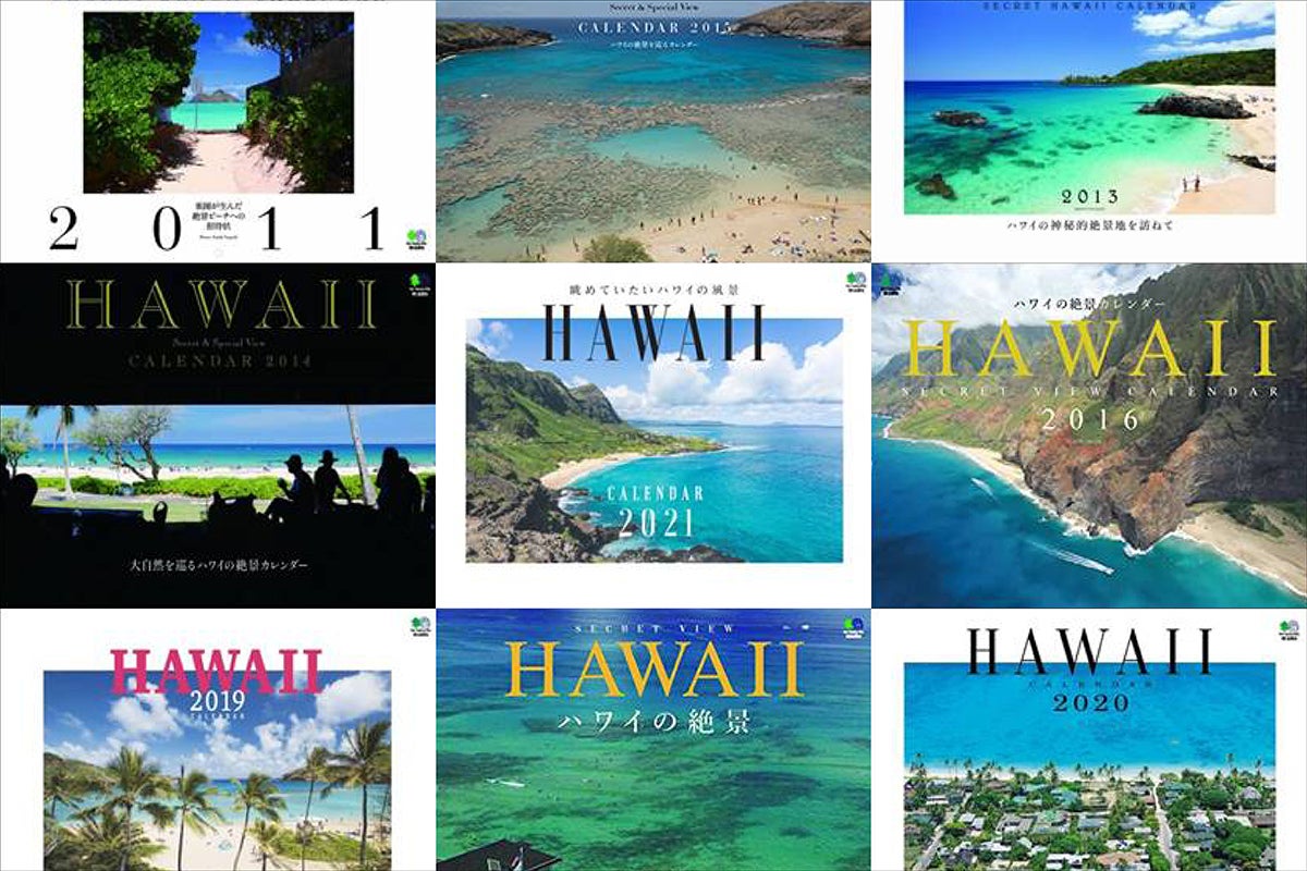 これまでに発行してきたハワイカレンダー。手前味噌ながら写真のクオリティには自信があります