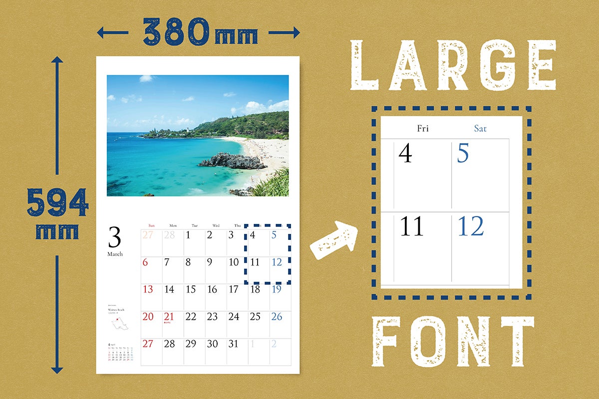 それでも発行したいと考えたのは、長年愛用していただいているお客様の声、それにこのコロナ禍でなかなか思い通りにハワイに行けない今、少しでもハワイを感じてもらいたいと考えたからです。カレンダーのタイトルに『眺めていたいハワイの風景』とつけたのは、そんな思いも込められています。