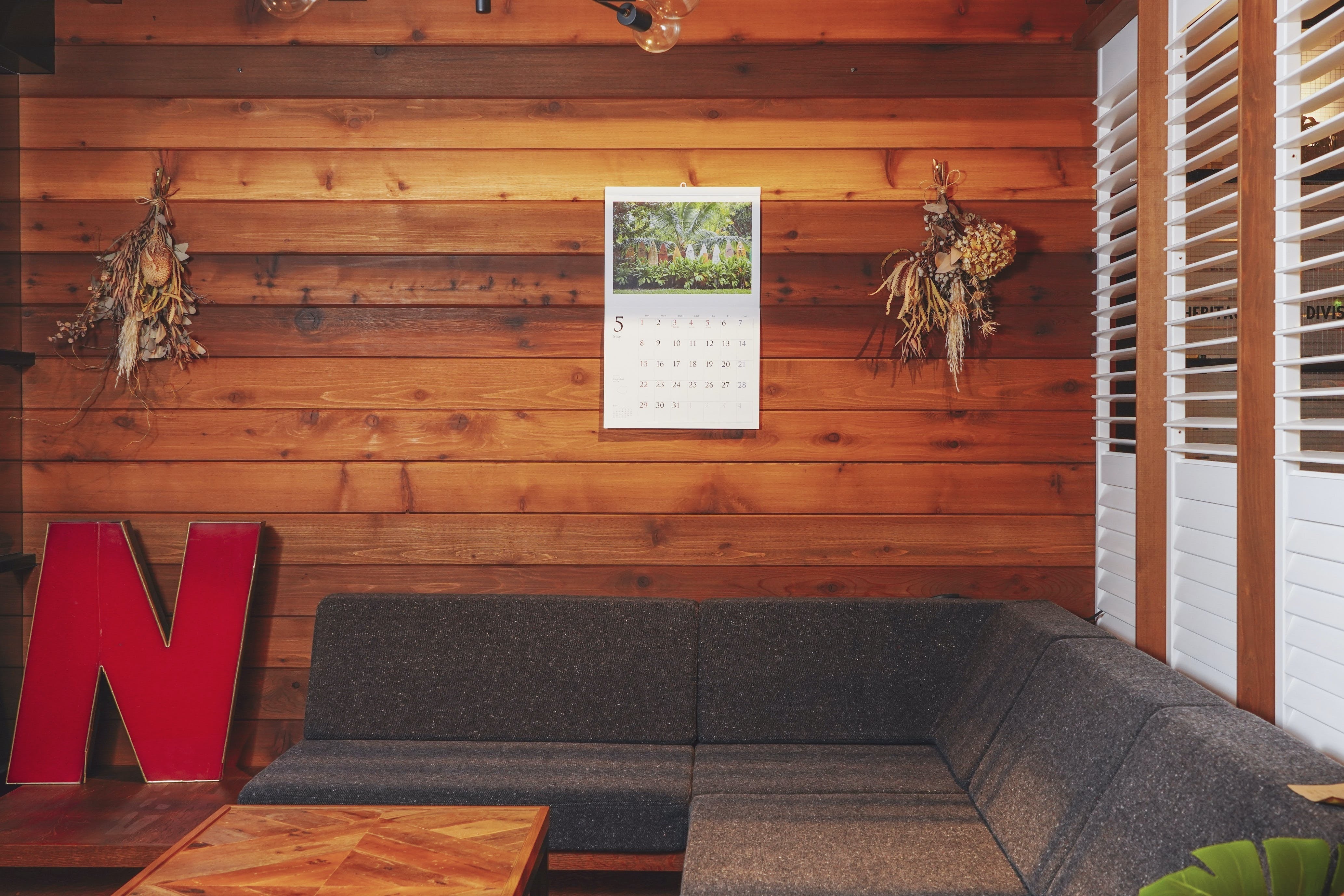 壁掛け用の大判サイズで見やすく、写真が際立つこだわりのデザイン