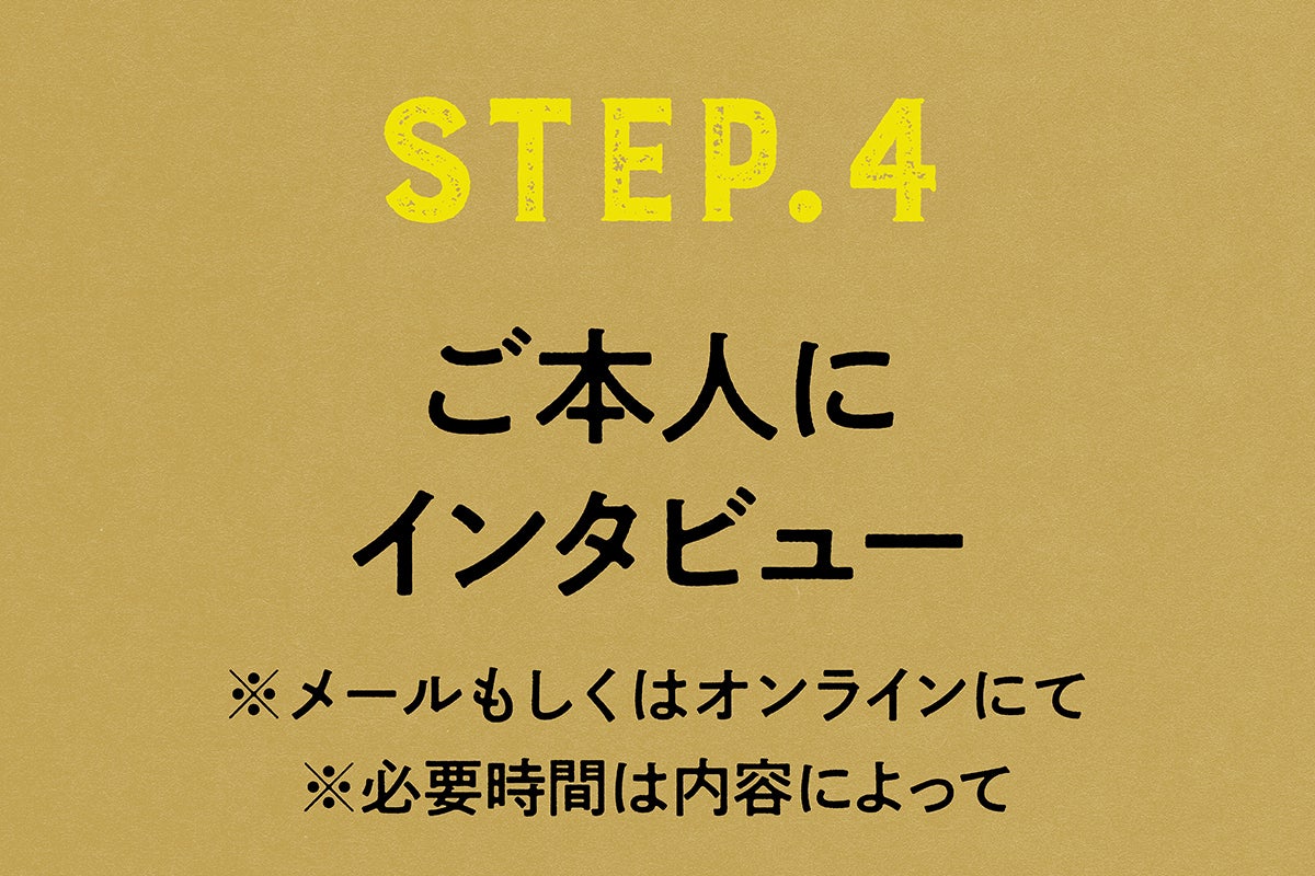 ページ内容が決まったら、今度はあなたを取材します。思い出を余すことなく語ってください!