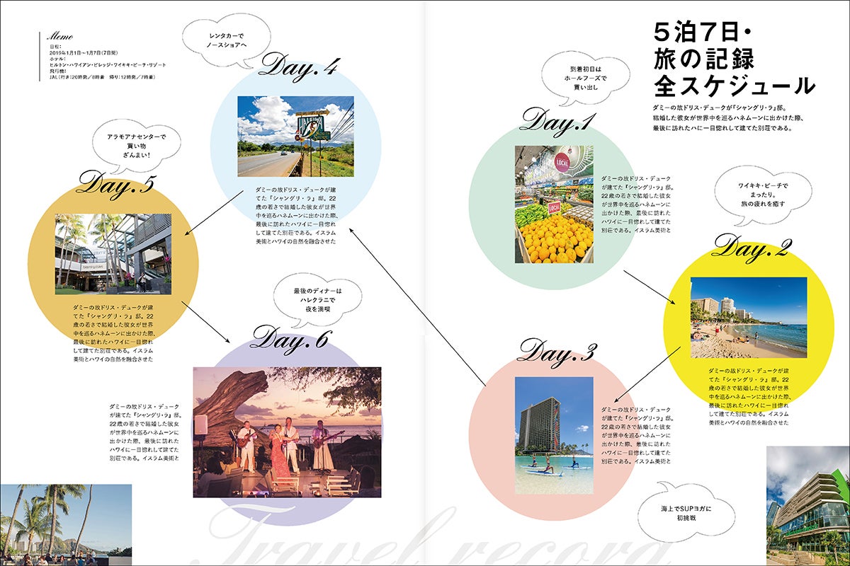 主役はもちろんあなたです。あなたの体験と思い出をもとに誌面を作っていきます。そのためハワイで撮影したお手持ちの写真を送ってもらい、編集部のストックフォトと組み合わせながら、ページを作っていきます。企画内容も思いのまま。あなたが感じたハワイを一冊にまとめてください!