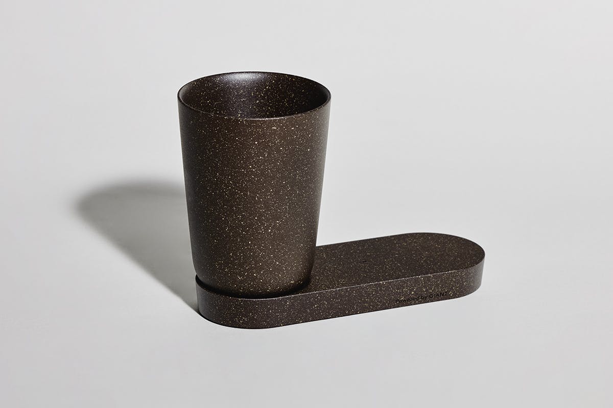 使用済みの豆殻を練り込んだ素材で作られたカップは、手触りでもコーヒーを感じられるテクスチャーに。