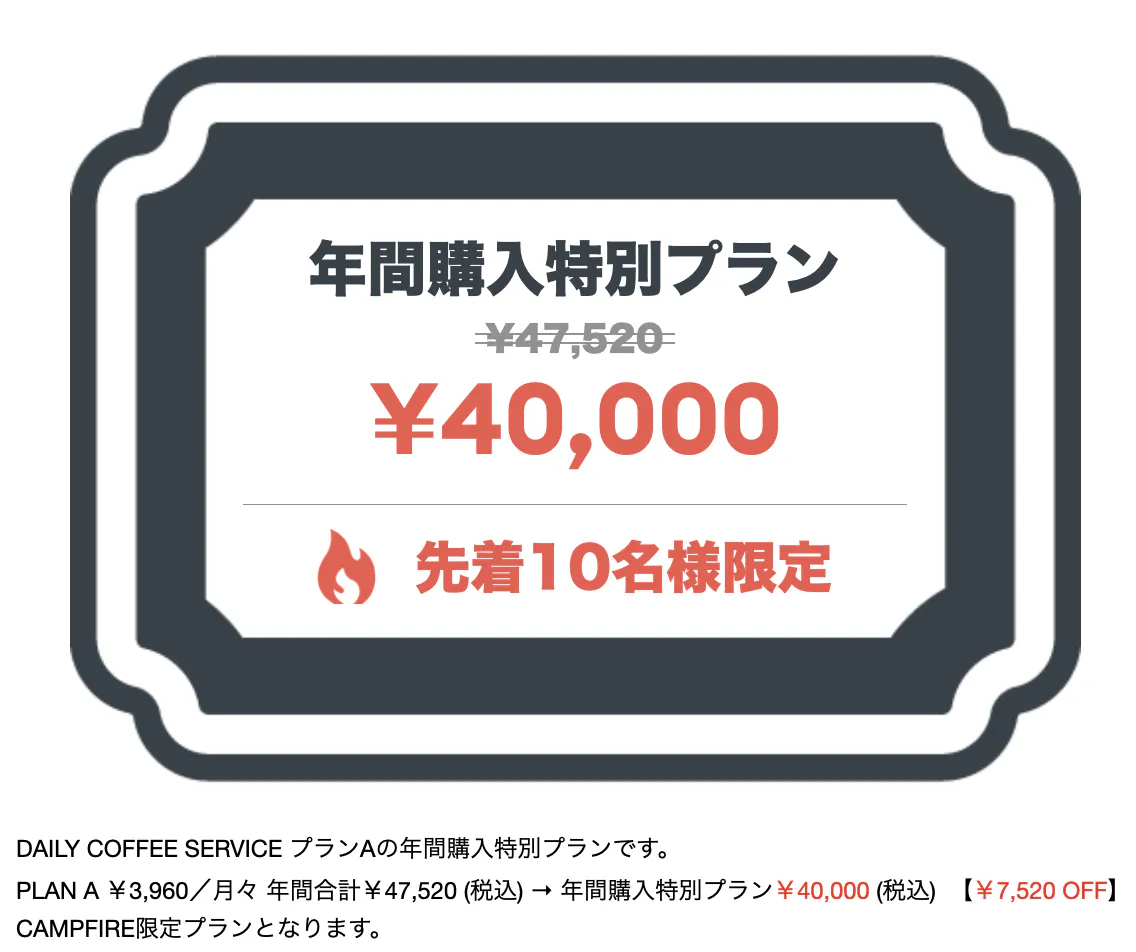DAILY COFFEE SERVICE プランAの年間購入特別プランです!