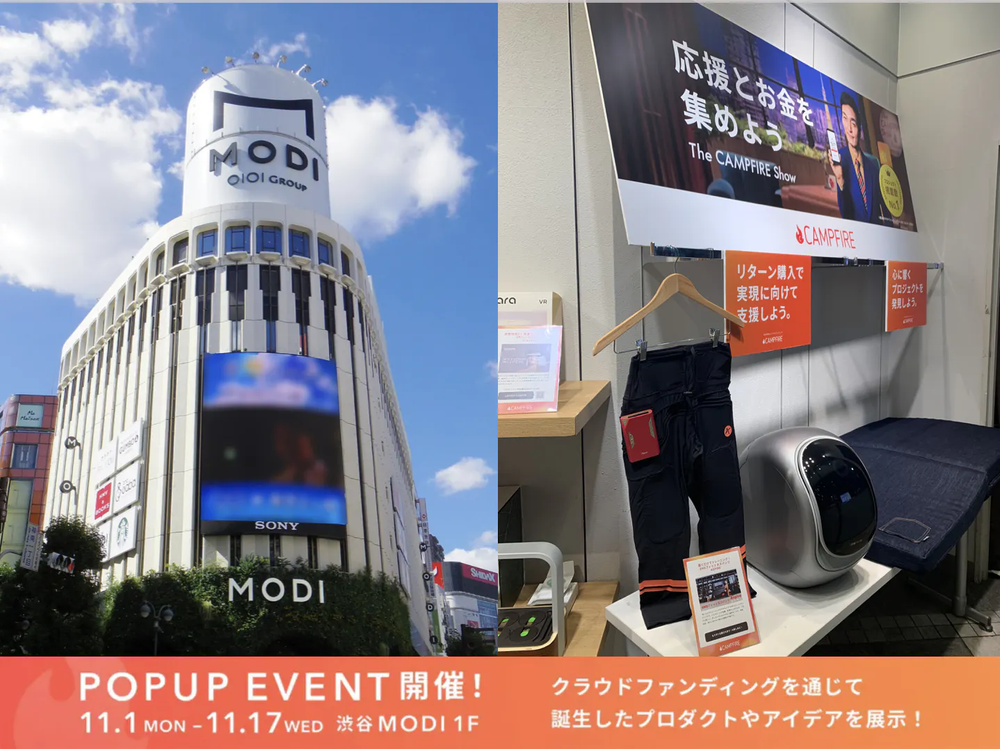 この度、Aspireは11月1日(月)から11月17日(水)まで、渋谷MODI 1Fで開催されるCAMPFIREのポップアップイベントにて出展しています。