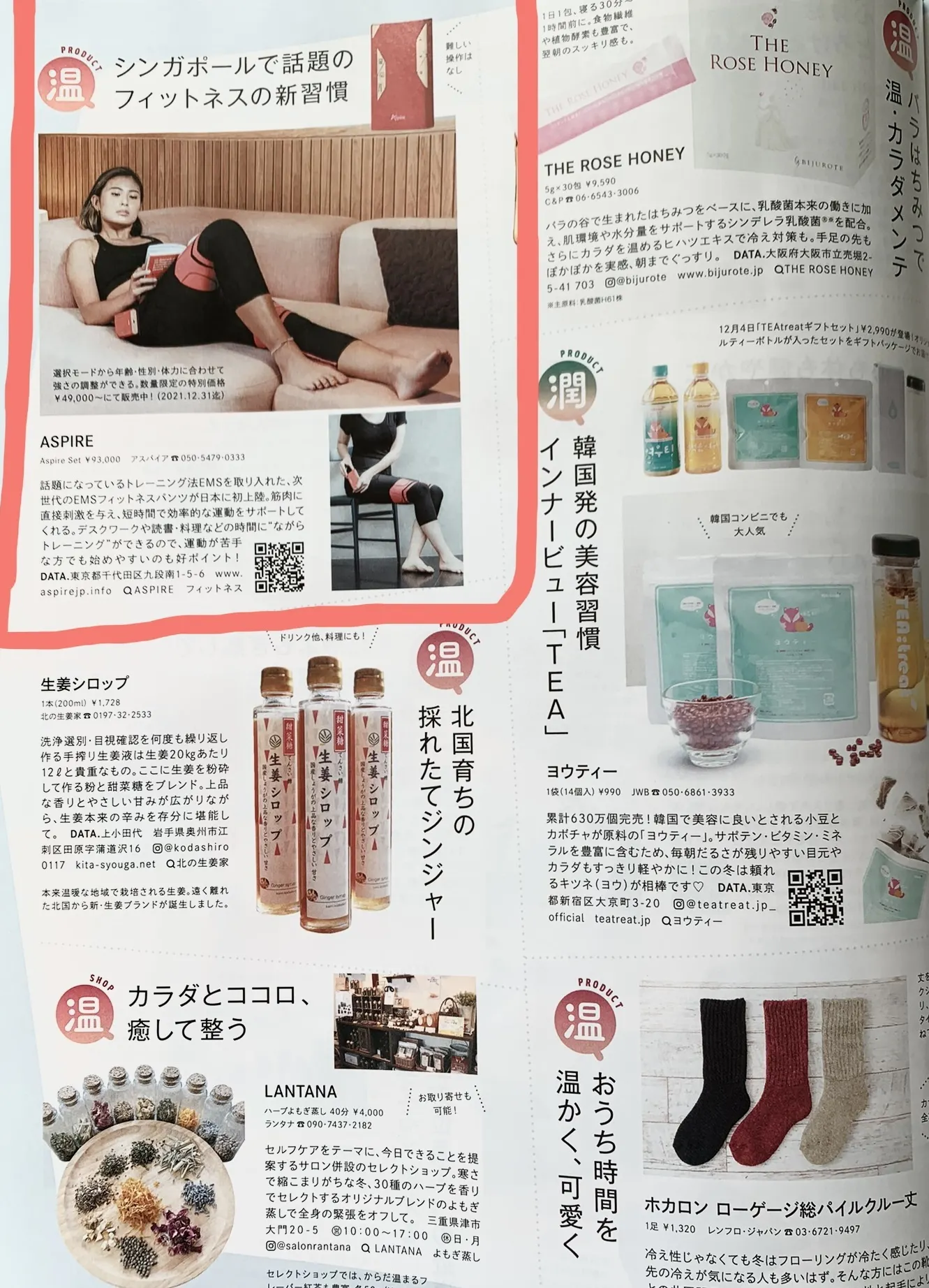 Aspireは雑誌「an an」の温活特集 (2021.12.15発売 ページ95) に掲載されました!