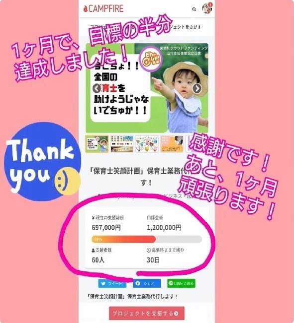 一か月が経過し、目標金額の半分までご支援いただけて、本当に感謝しております。