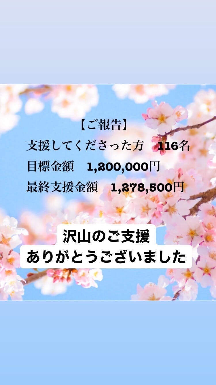 本当に沢山の方のお力添えで目標金額達成することが出来ました。