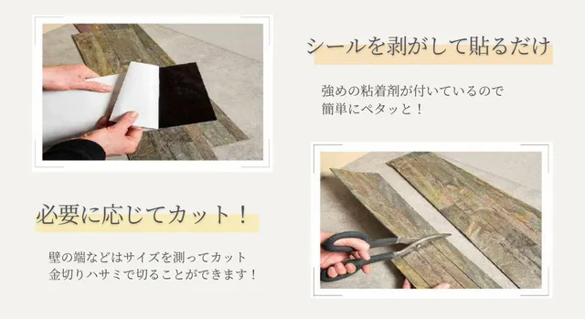 ● 壁紙へ取り付ける場合にはスリムストーンベニア・モザイクの重みで壁紙がはがれたり、浮いてきたりすることもあります。タッカーなどで壁紙と下地を補強することをお勧めします。