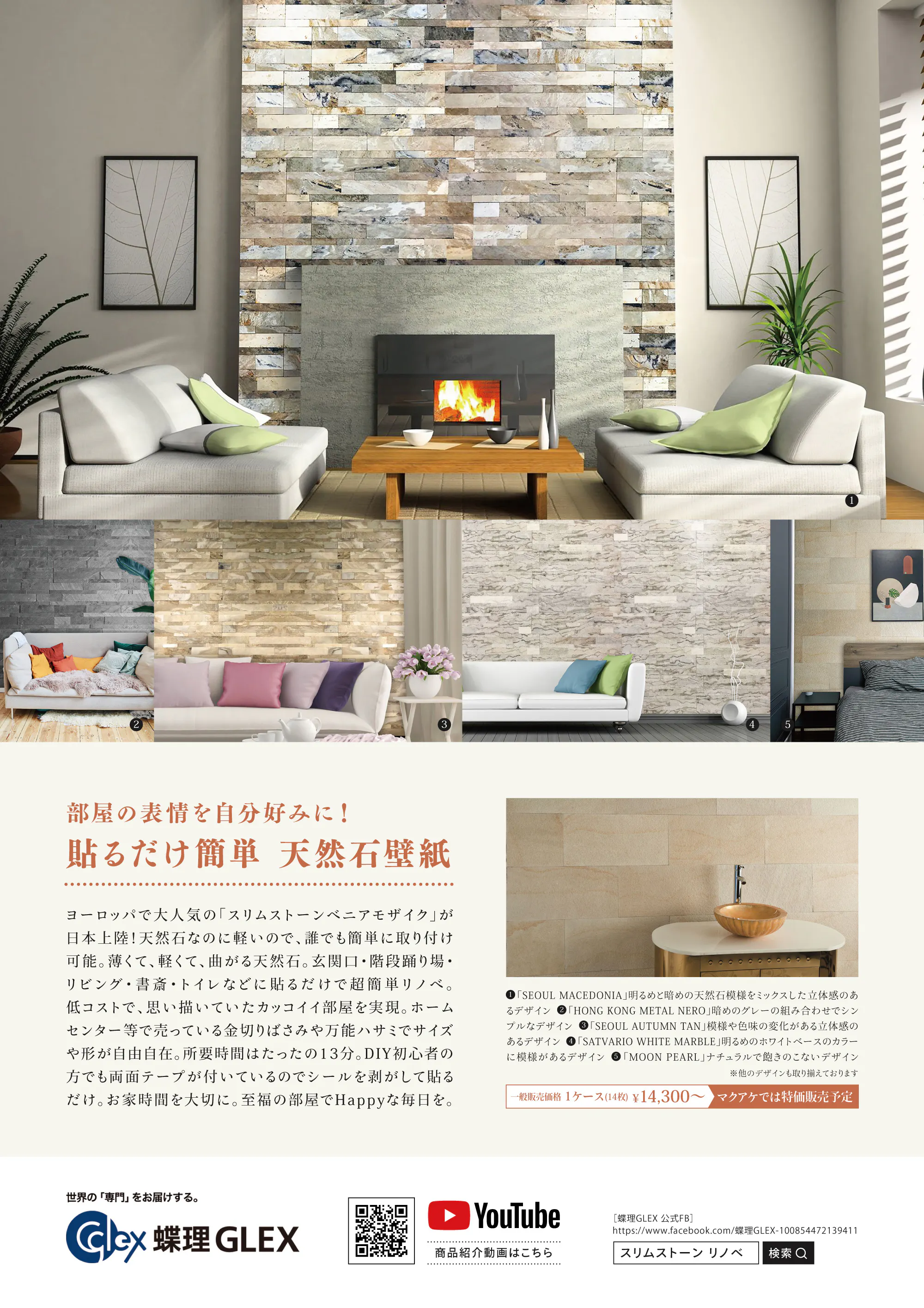 ‣ 天然石なのに軽い!壁紙(壁材)なのに立体的!