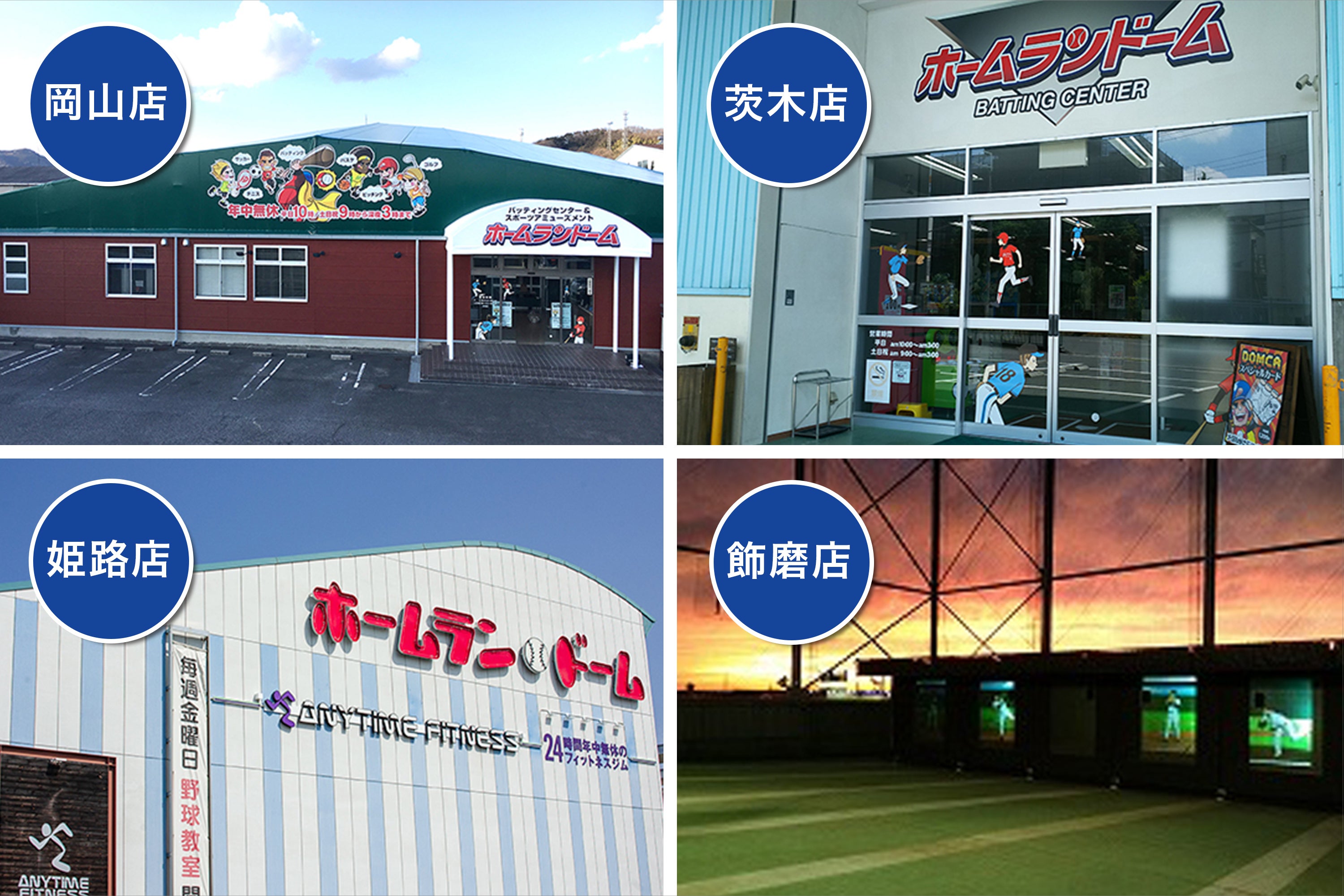 ホームランドームは株式会社水内ゴムが運営する、全国8店舗で展開しているバッティングセンターです。